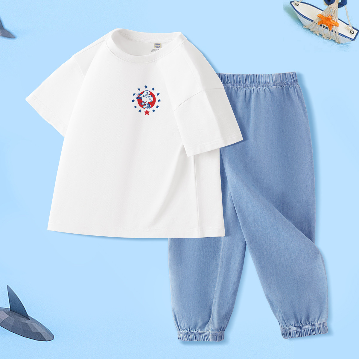 童装男童运动套装儿童夏季纯棉短袖t恤2025年新款仿牛仔裤子 955423