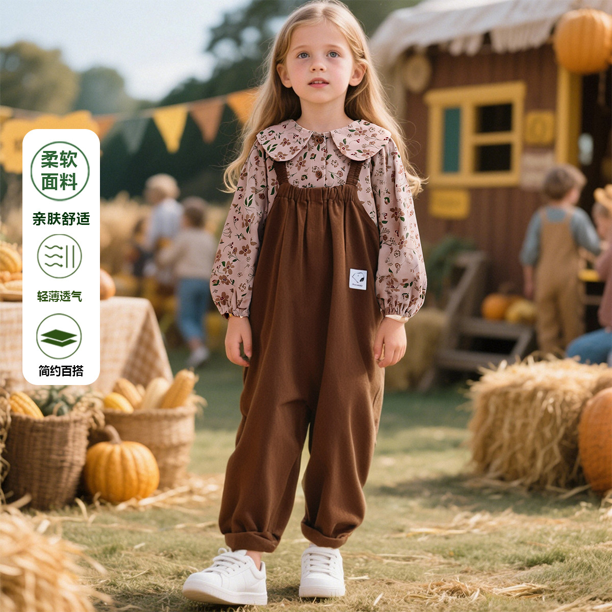 史努比女童套装春秋季娃娃领衬衣吊带裤两件套女宝宝时尚碎花童装 802143