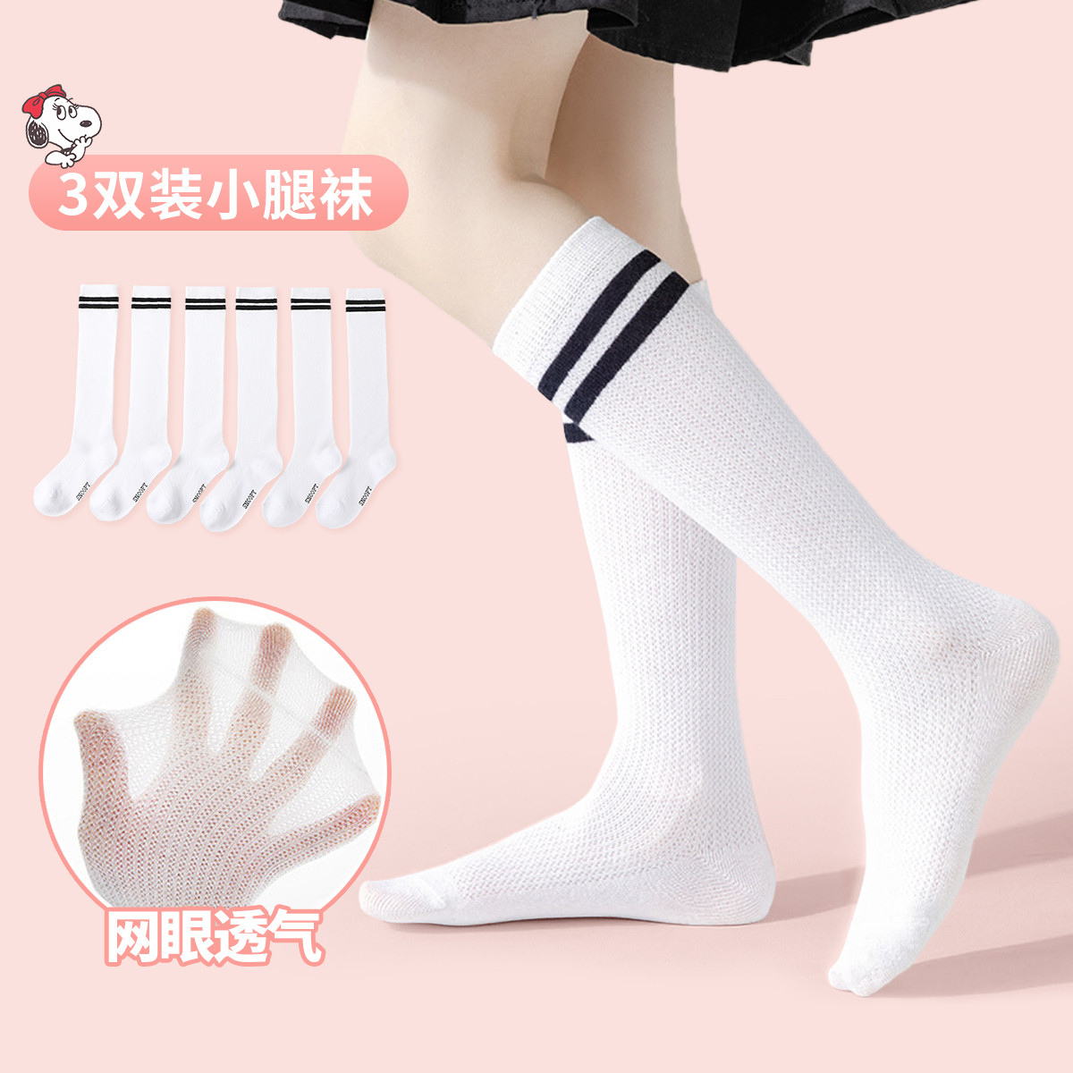 【3双装】儿童袜子秋透气网眼小腿袜运动中筒袜女童足球袜潮 544920