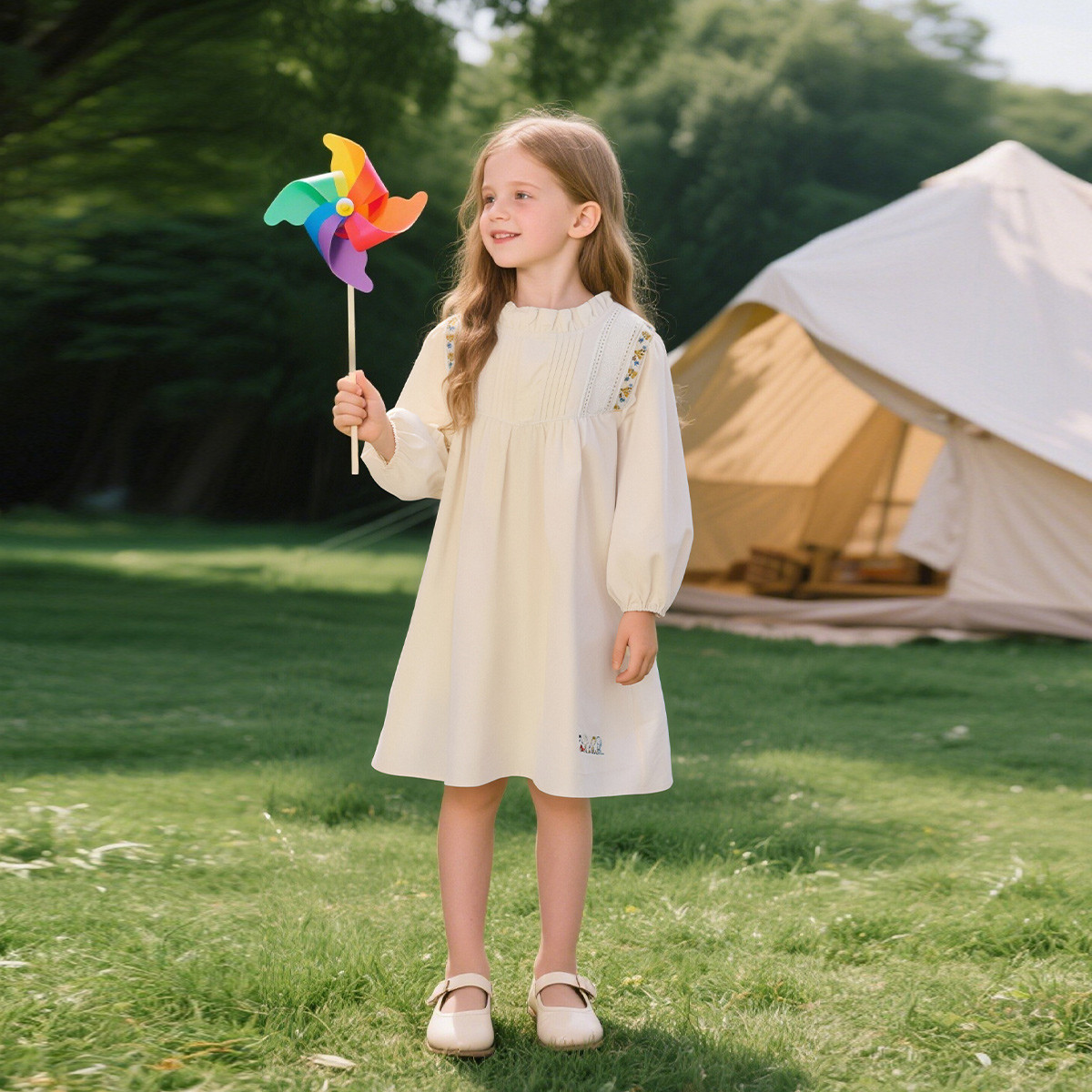 史努比女童宝宝田园风连衣裙洋气简约绣花连衣裙中大童宝宝 777567