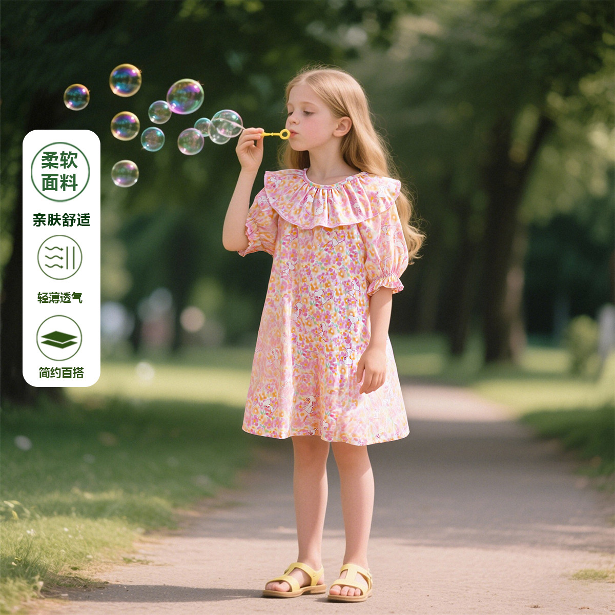 【碎花公主裙】女孩夏季碎花及膝长裙子户外女童童连衣裙甜美可爱 450719