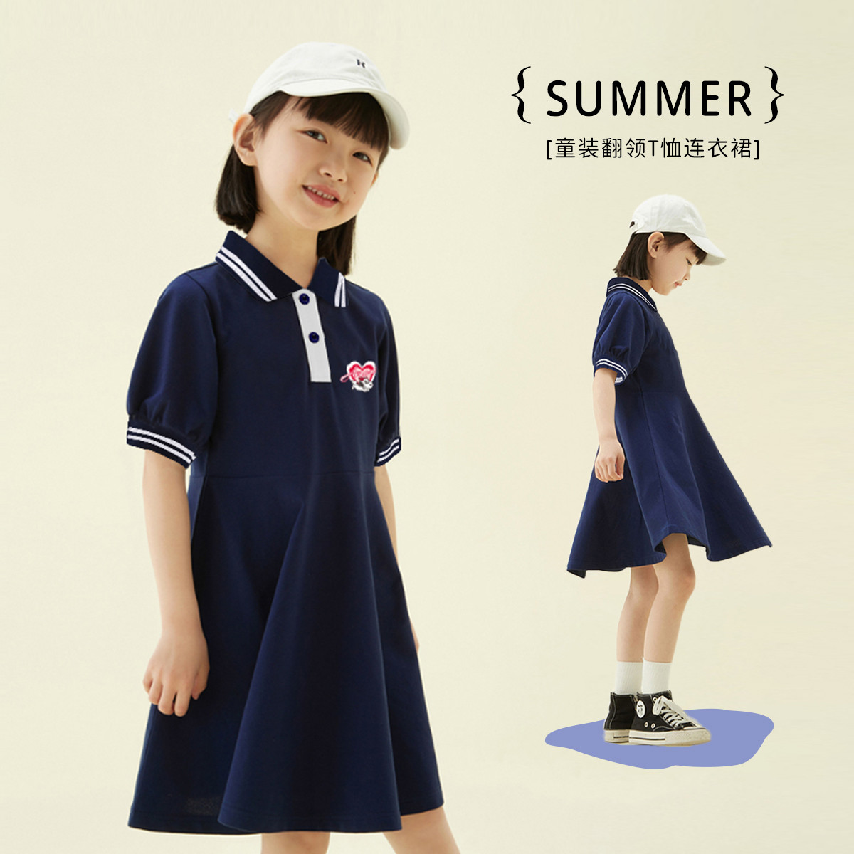 女童连衣裙新款2025夏小中大童POLO领裙子运动休闲衬衫裙 500383