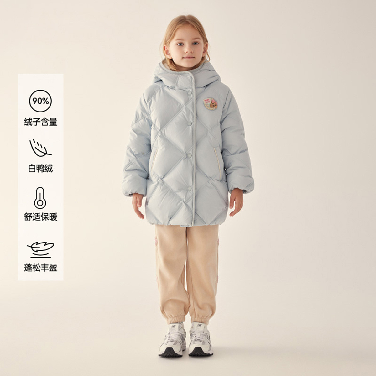 【中长款连帽羽绒】小熊童装秋冬女童连帽中长款羽绒服 049729
