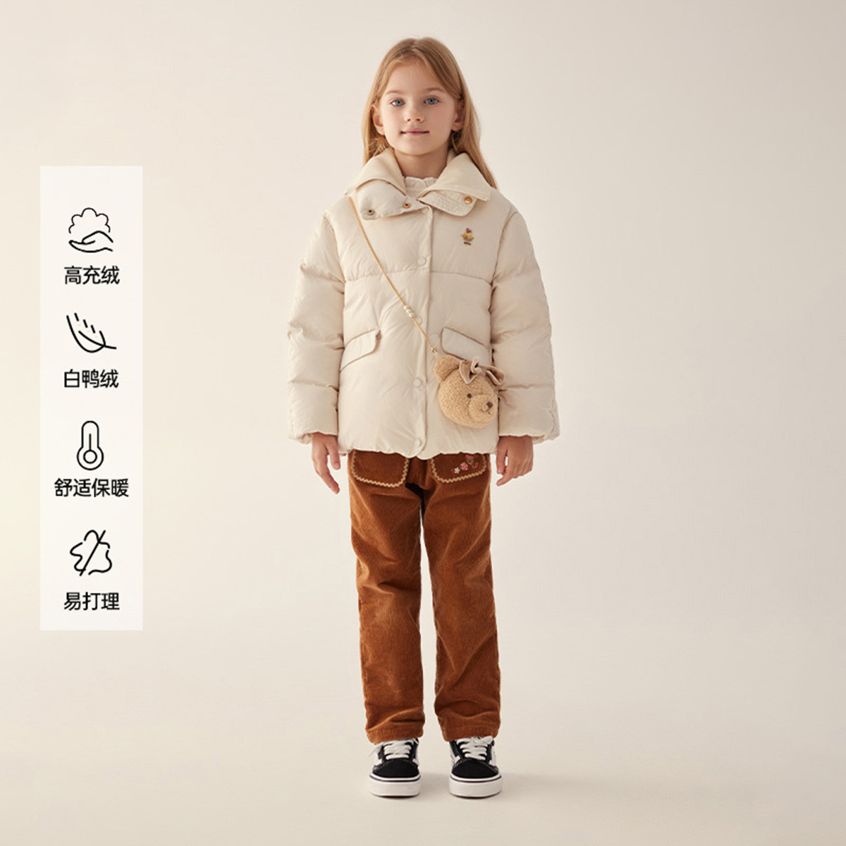 【短款保暖羽绒】小熊童装秋冬女童翻领面包式羽绒服 029249