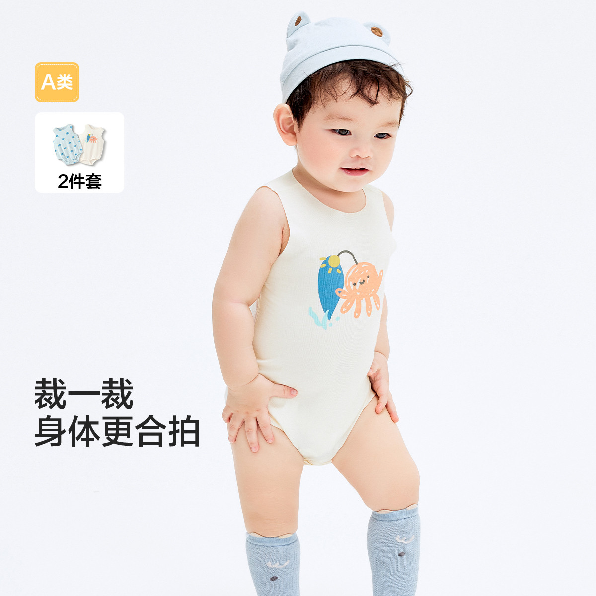 环保新生儿衣服宝宝爬服哈衣男童女童2024春夏装薄款两件装 902981