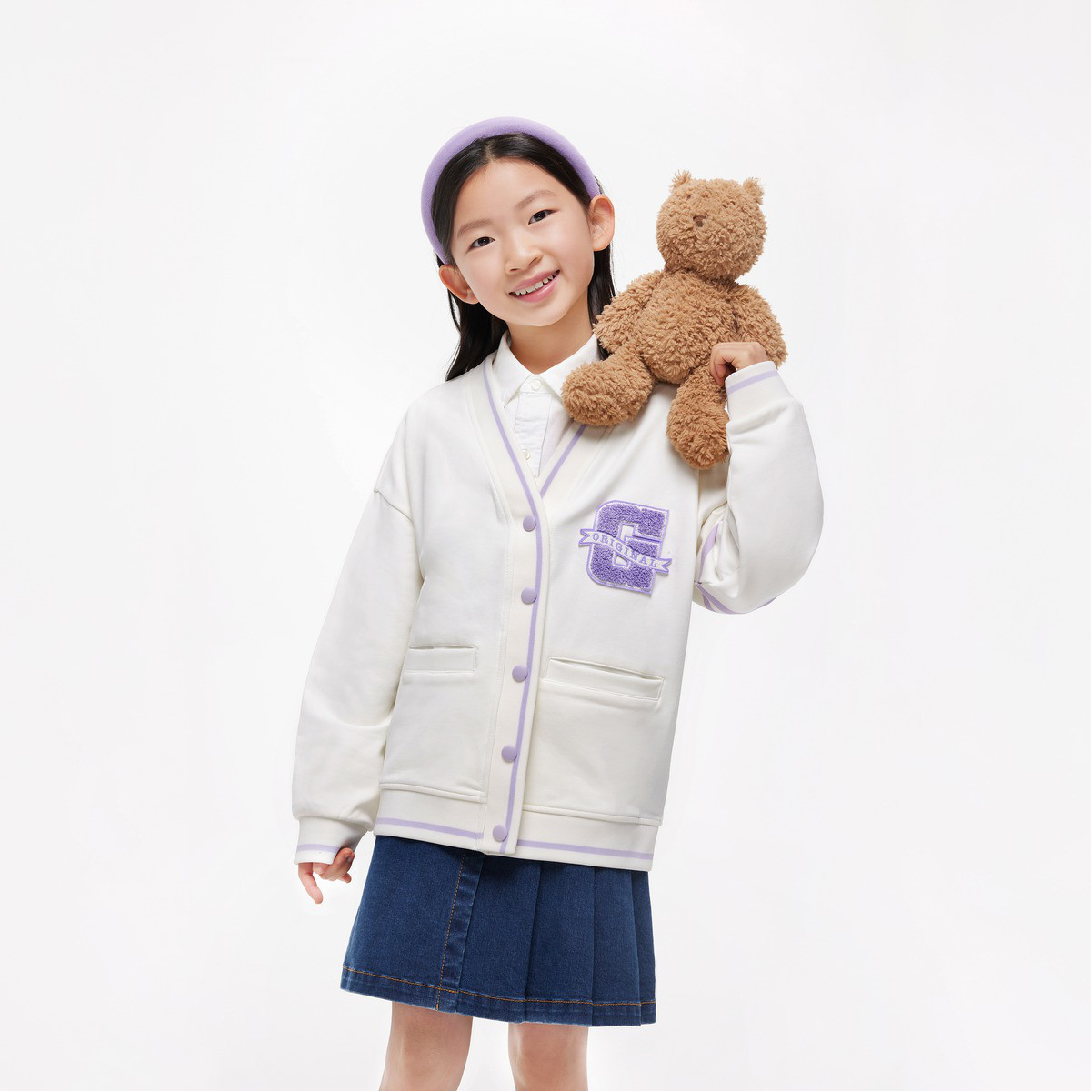 Gap女童LOGO撞色V领大G开衫儿童洋气时髦外套891984 791706