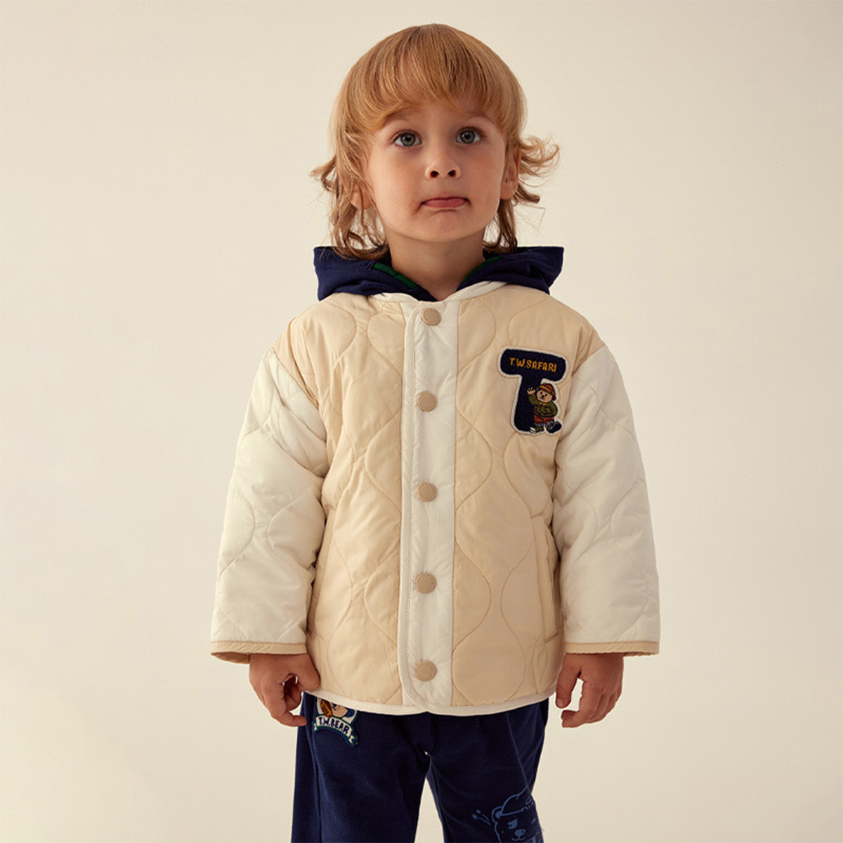 小熊童装春款男宝宝保暖三防撞色棉服 147713
