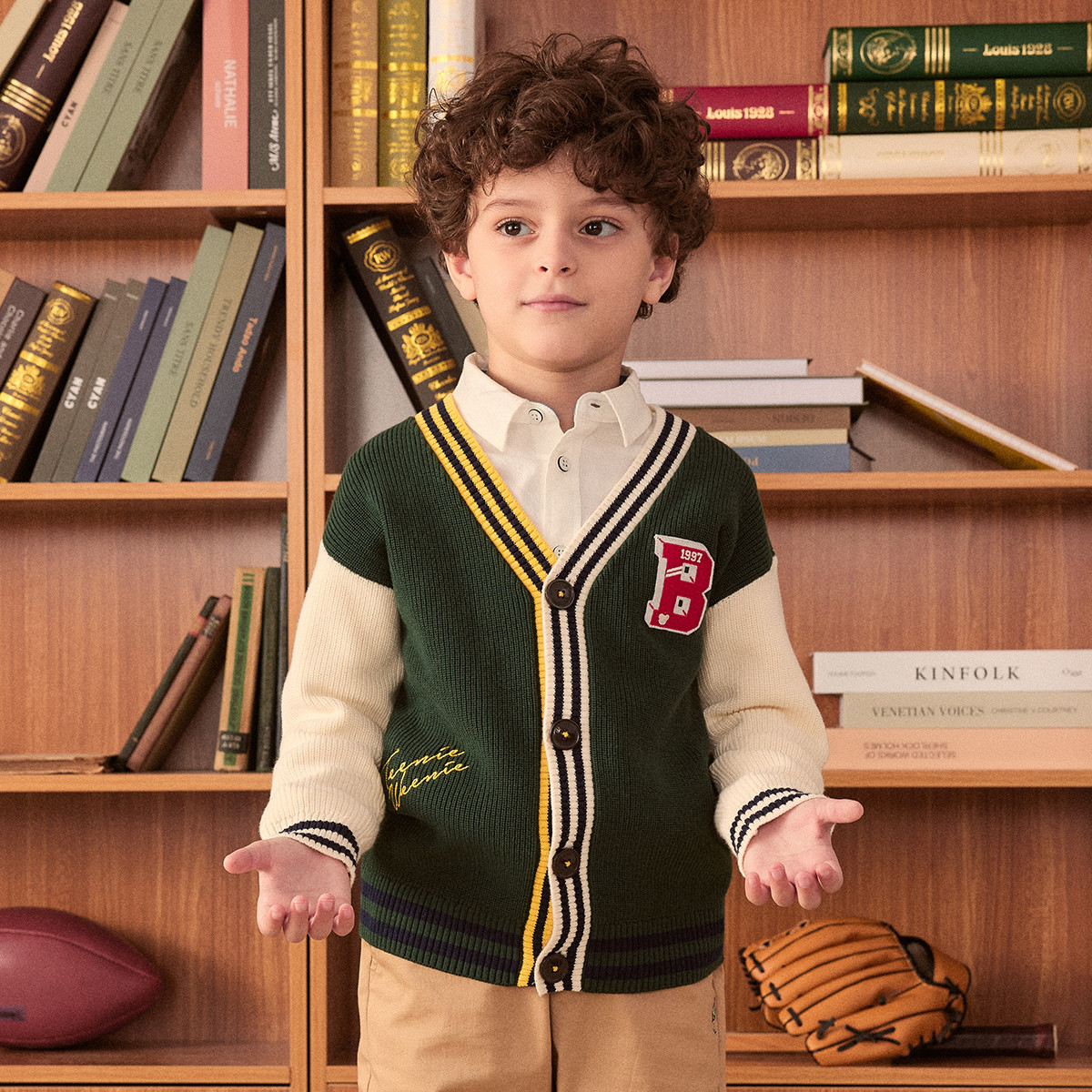 小熊童装男童春秋学院风撞色毛衣开衫 855041
