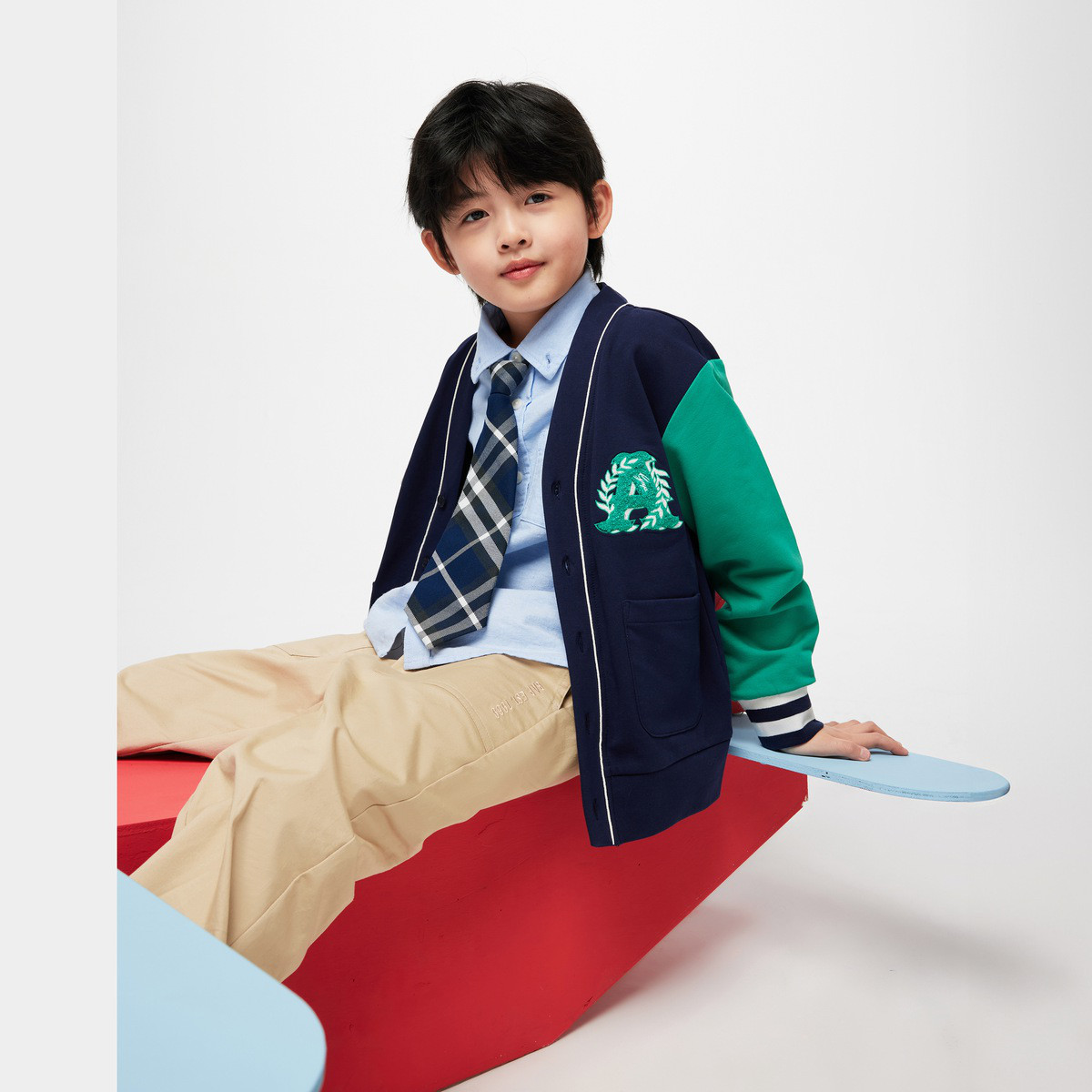 Gap男童秋冬2024款LOGO撞色拼接V领开衫儿童装洋气外套890409 398490