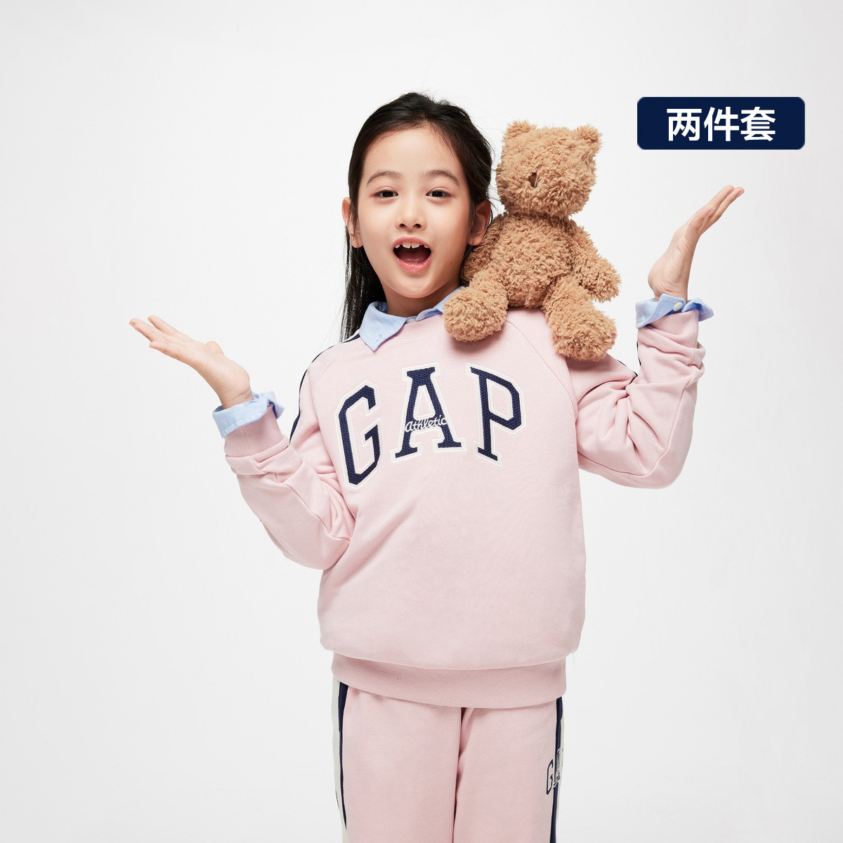 Gap男女童春季2024款LOGO撞色运动卫衣卫裤两件套套装890209 615578