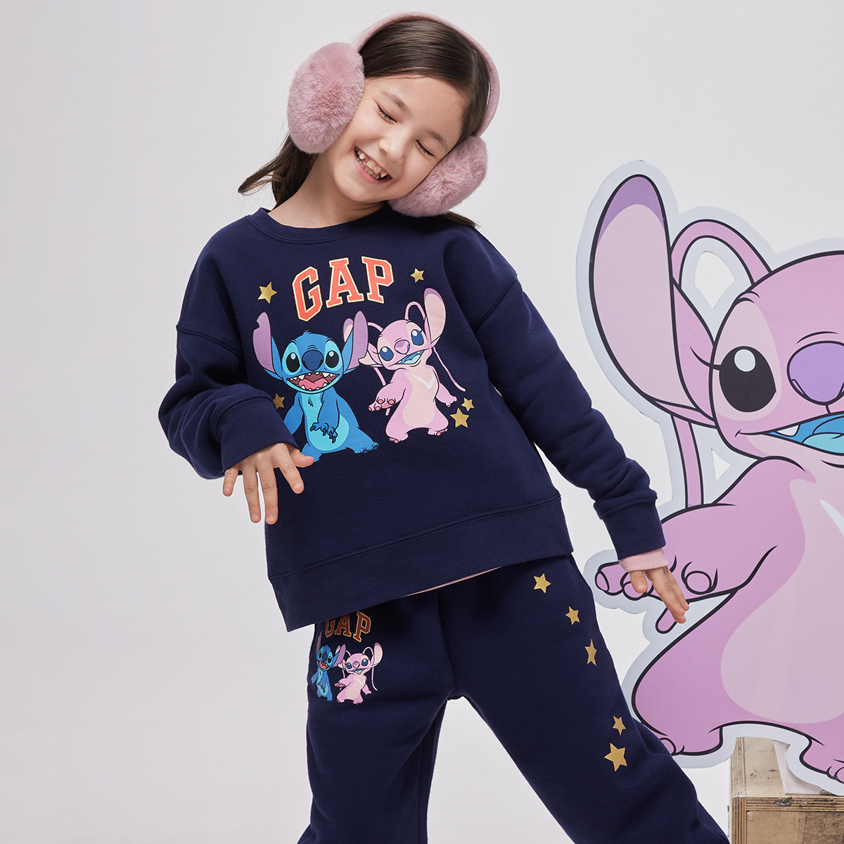 【史迪奇联名】Gap女童春秋2024年款运动抓绒保暖卫衣847132 892506