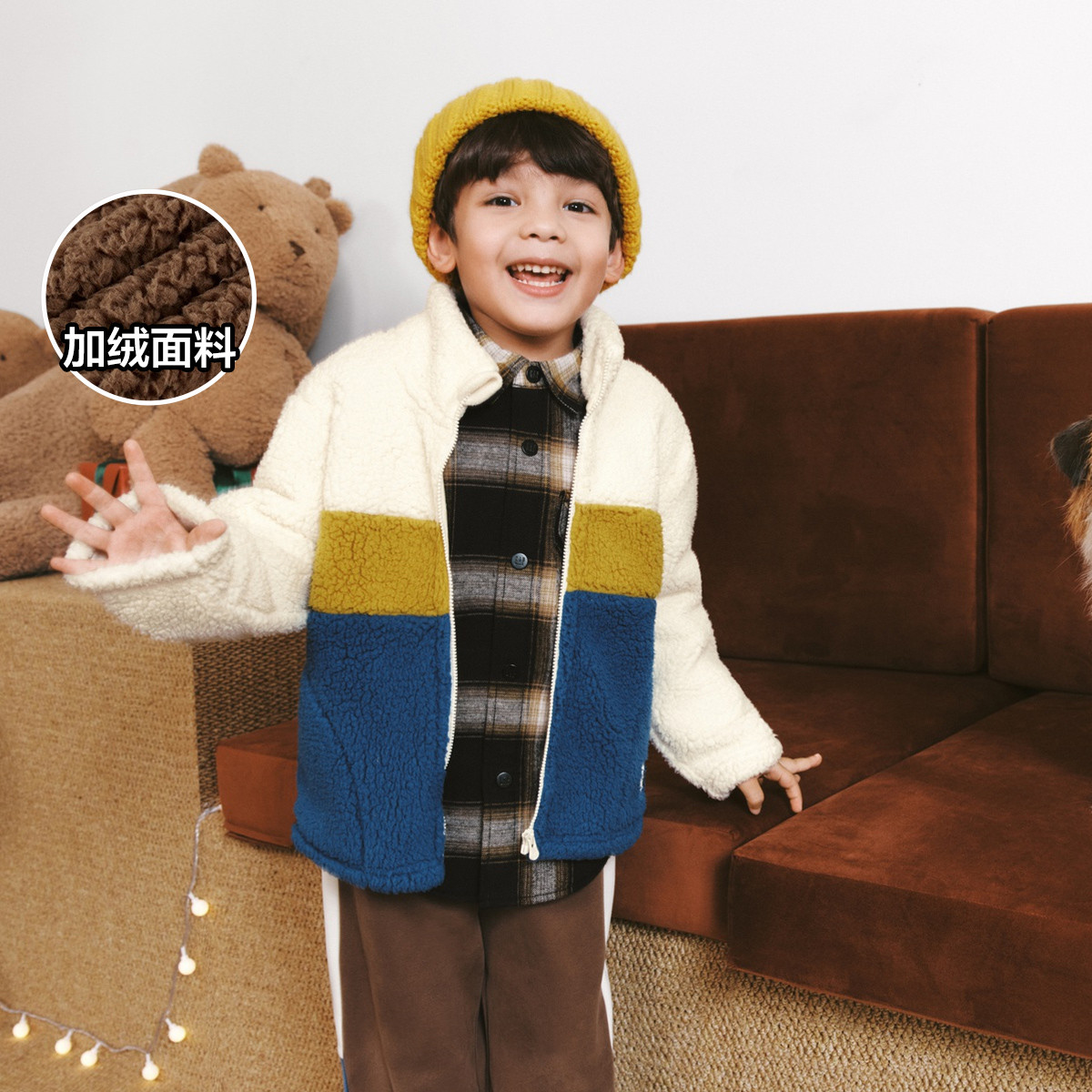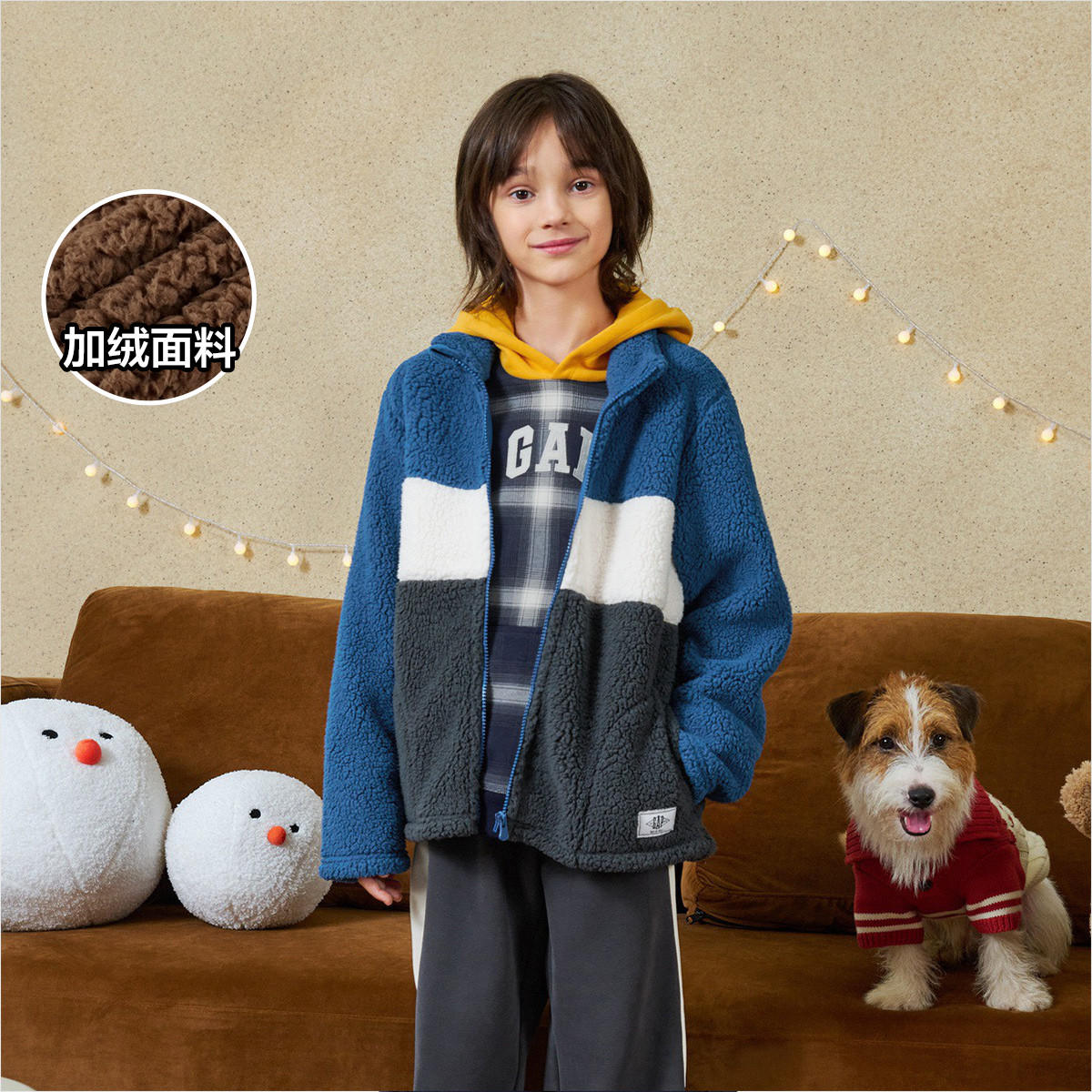 Gap男幼春秋LOGO洋气仿羊羔绒夹克841029儿童装保暖外套 451738