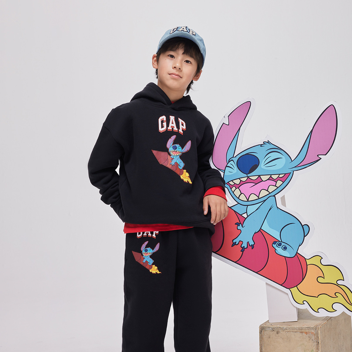 【史迪奇联名】Gap男女童春秋2024款抓绒保暖连帽卫衣870728 803994