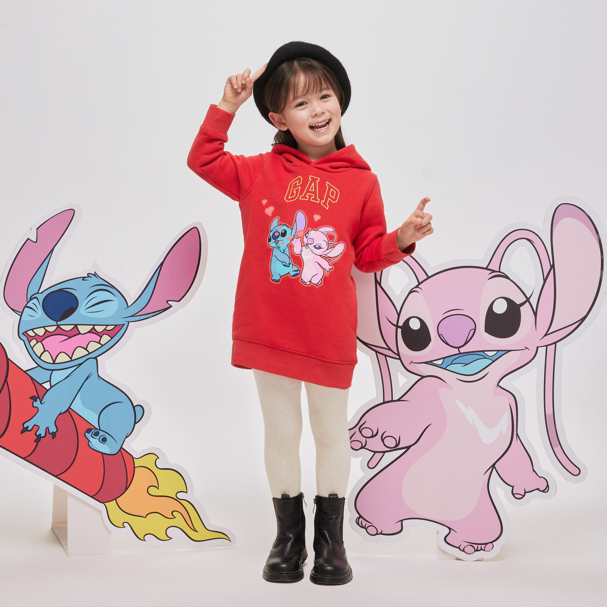 【史迪奇联名】Gap女幼童2024抓绒卫衣裙红色连衣裙847191 586906