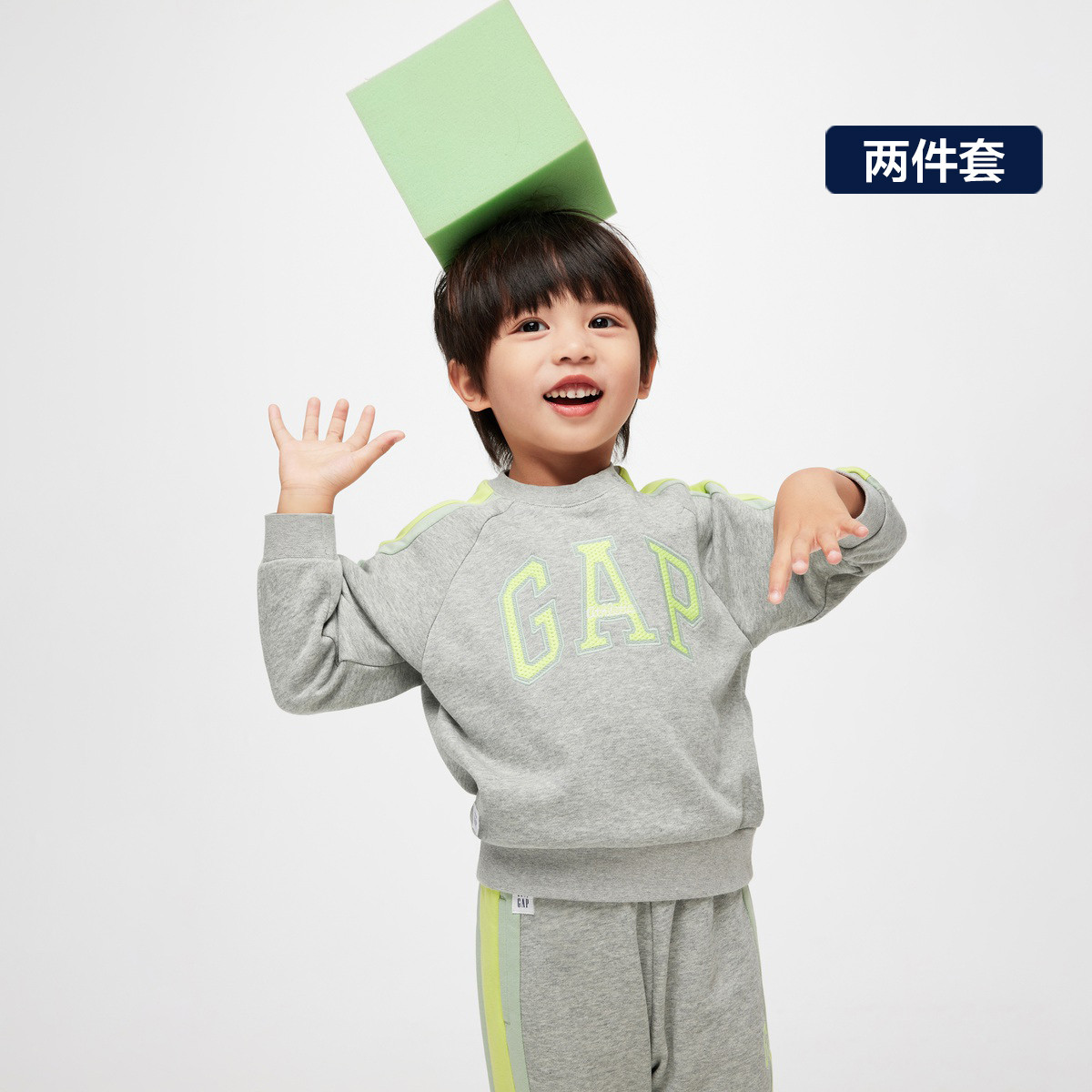 Gap男女幼童春季2024款LOGO时髦卫衣卫裤两件套儿童套装890197 790106