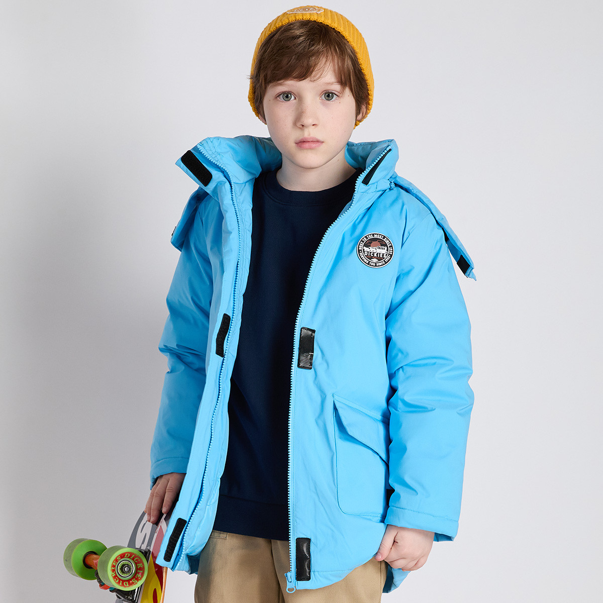 冬季款工装户外羽绒服中大童长款90白鸭绒三防儿童保暖外套连帽 323865
