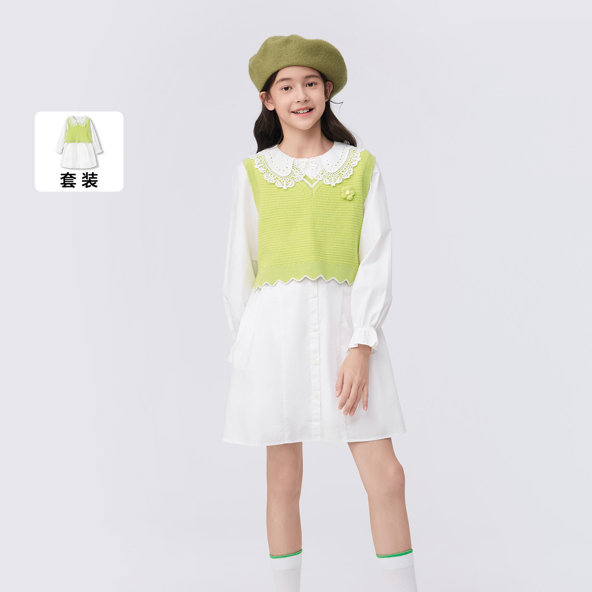 撞色两件套女童长袖套装儿童春秋装童装中大童小清新国风新中式 134981