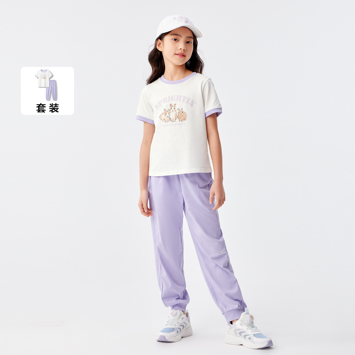 女童学院风套装25年夏季儿童夏款纯棉透气短袖中大童运动两件套 908371