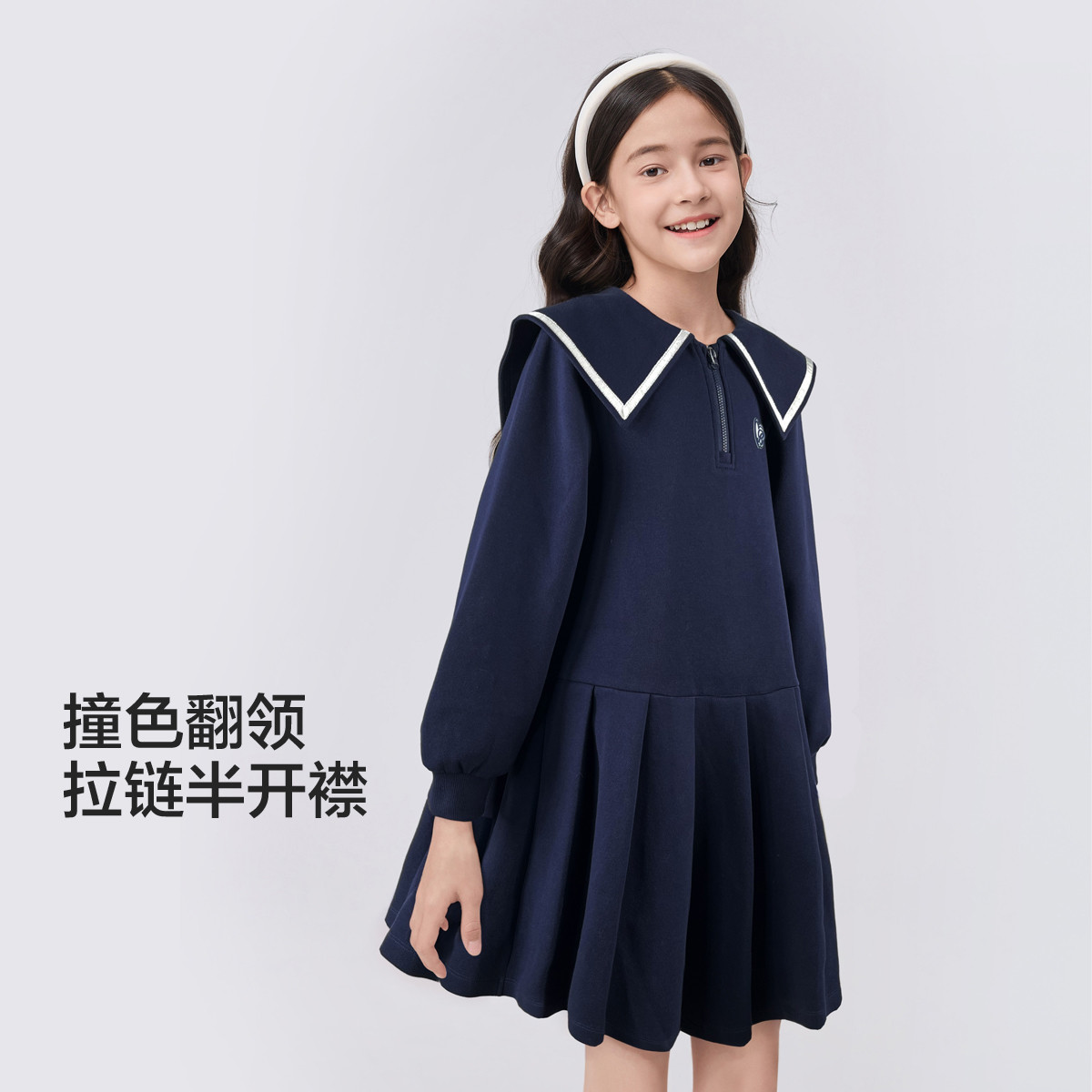 学院风连衣裙女童卫衣裙中大童春秋装儿童公主裙条纹高级感公主裙 735173