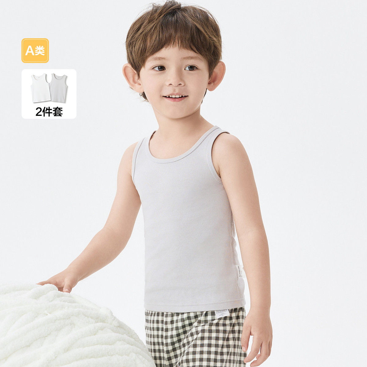 纯棉两件装儿童背心男童女童春秋薄款吊带内衣大童无袖打底衫上衣 037445