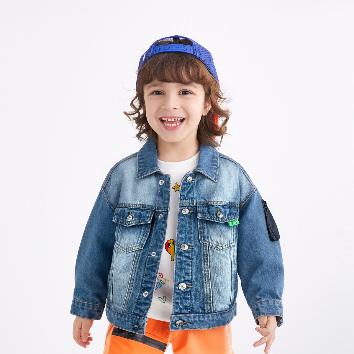 纯棉拼接牛仔儿童外套男童春装宝宝童装小童多口袋上衣亲肤透气 183429