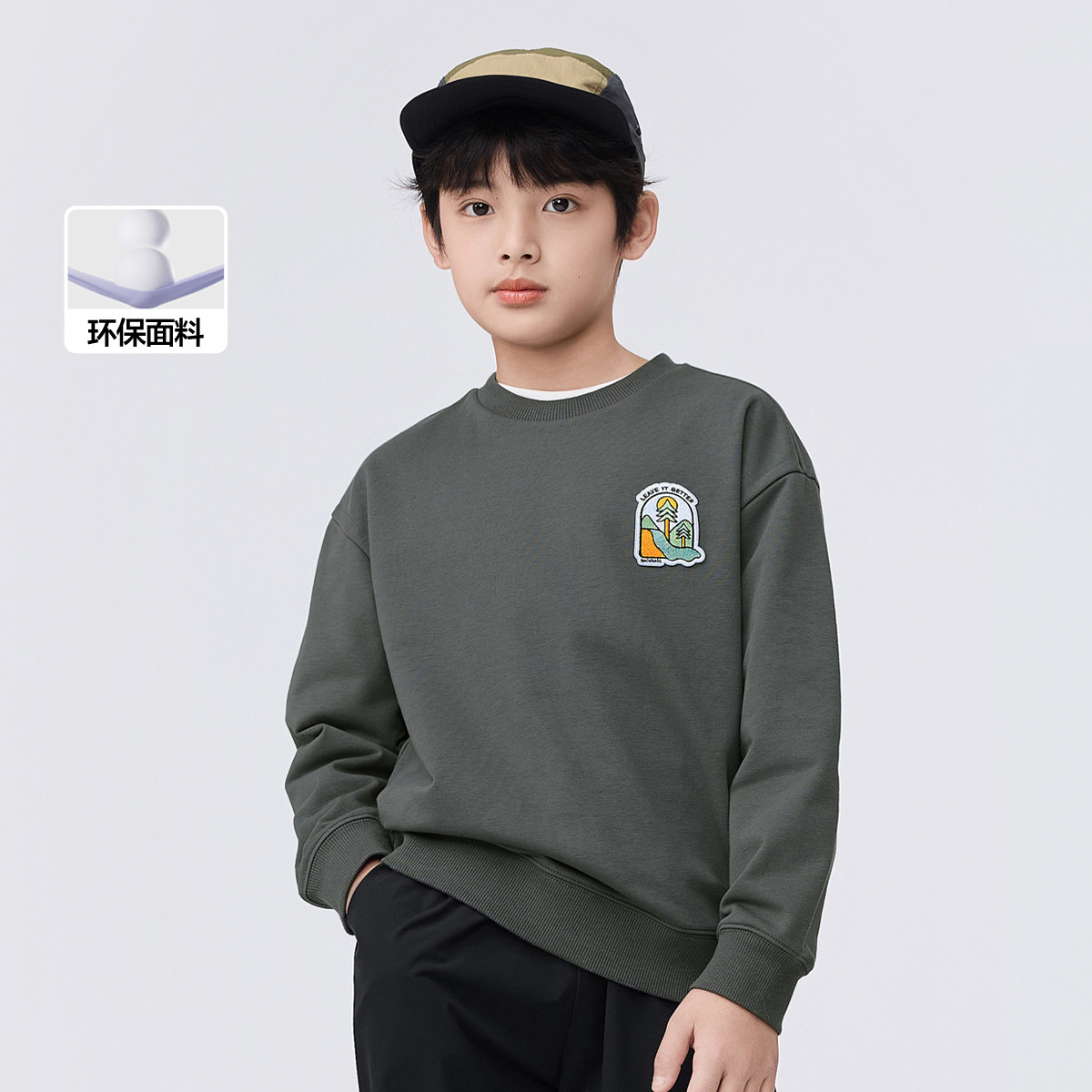 户外风基础款卫衣男童儿童春秋装上衣圆领套头中大童印花 648645