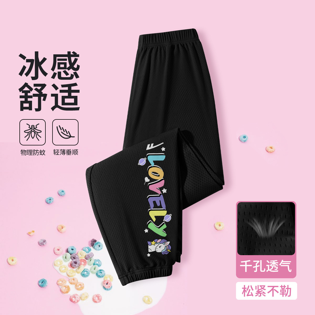 女童夏装裤子儿童网眼防蚊裤薄款透气夏季凉凉裤大童休闲运动长裤 270803