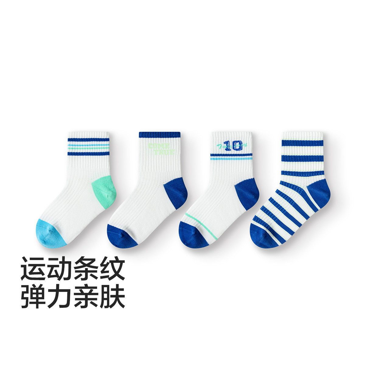 儿童袜子夏网眼袜棉薄款透气男童女童学院风中筒袜弹力运动四双装 391685