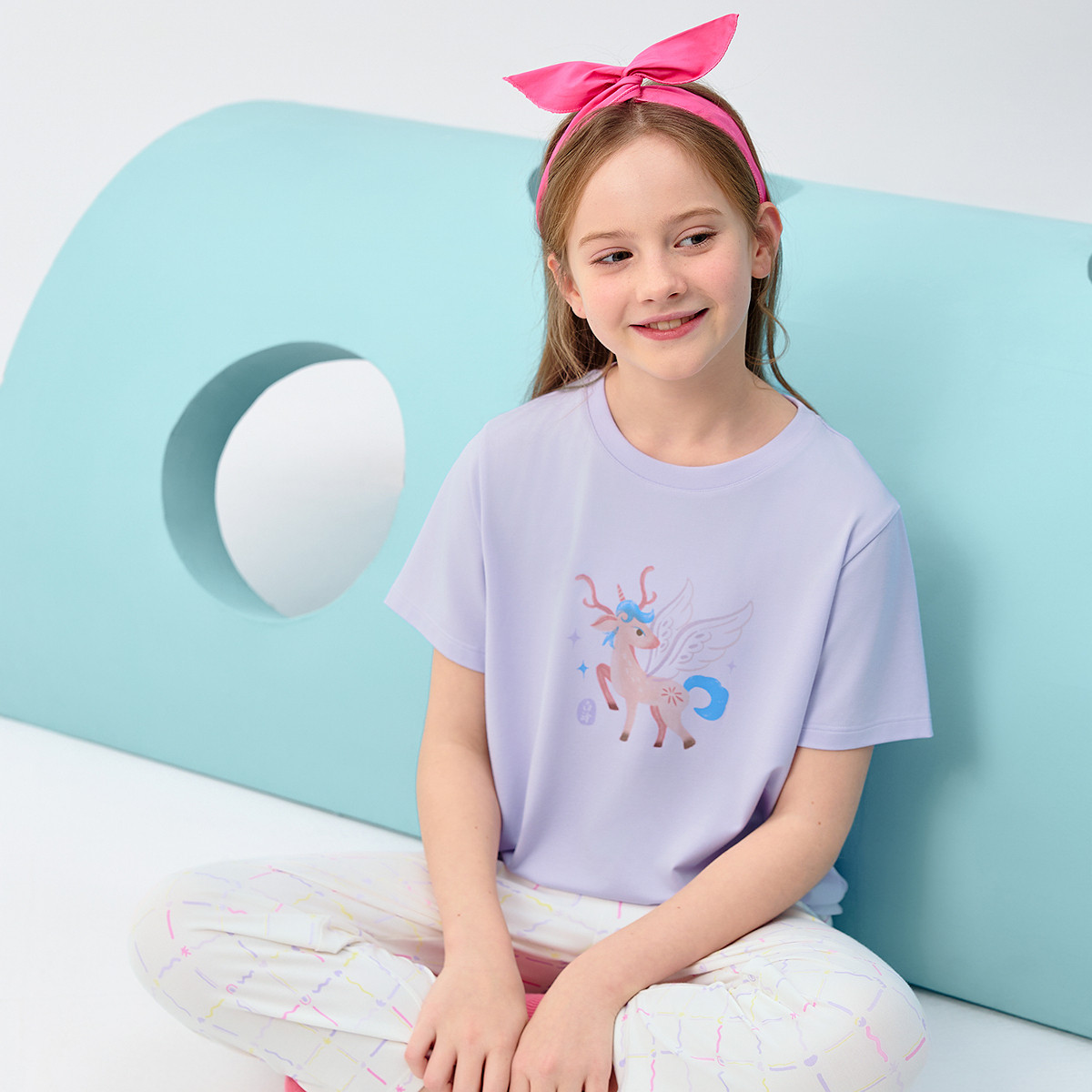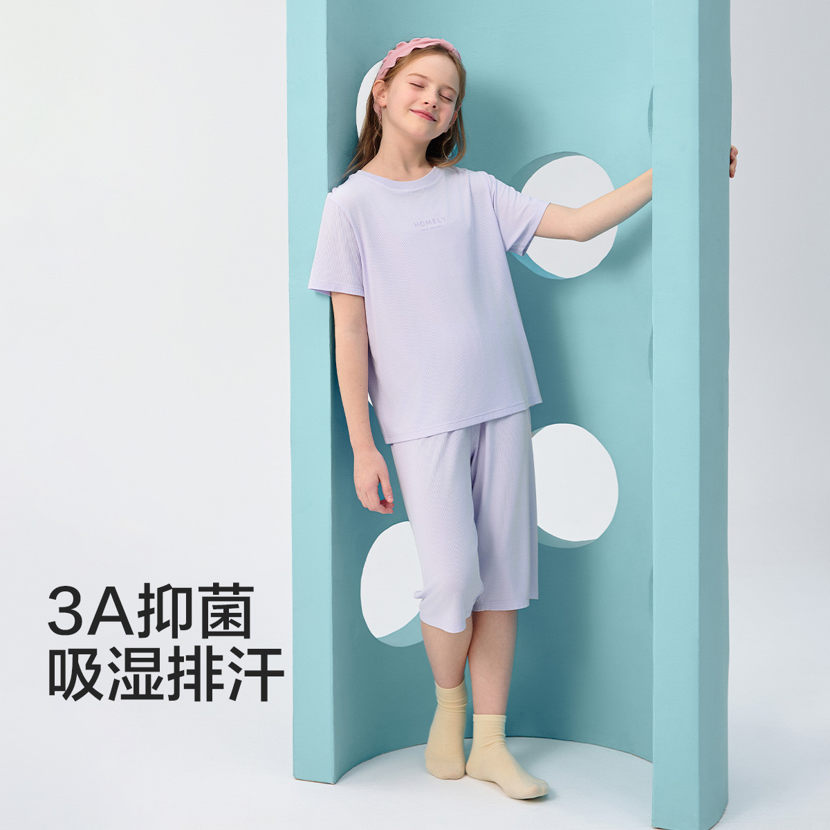 抑菌儿童睡衣套装夏季新款男童女童家居服可外出睡衣透气短袖套装 869957