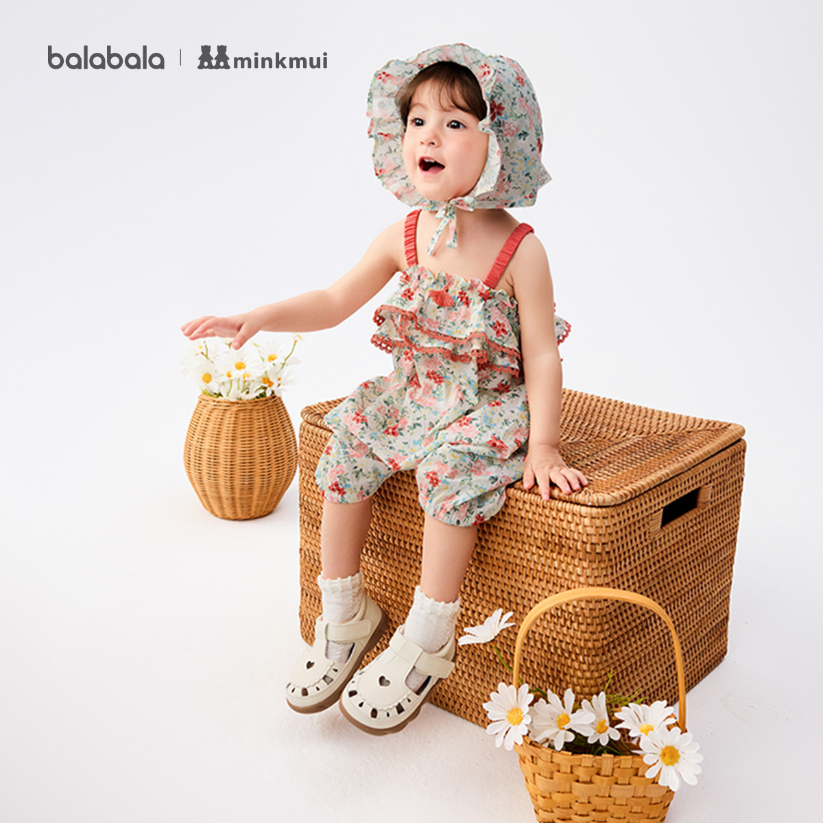 A类商场同款女童婴儿连体衣宝宝哈衣2025夏新款甜美吊带爬服 738885