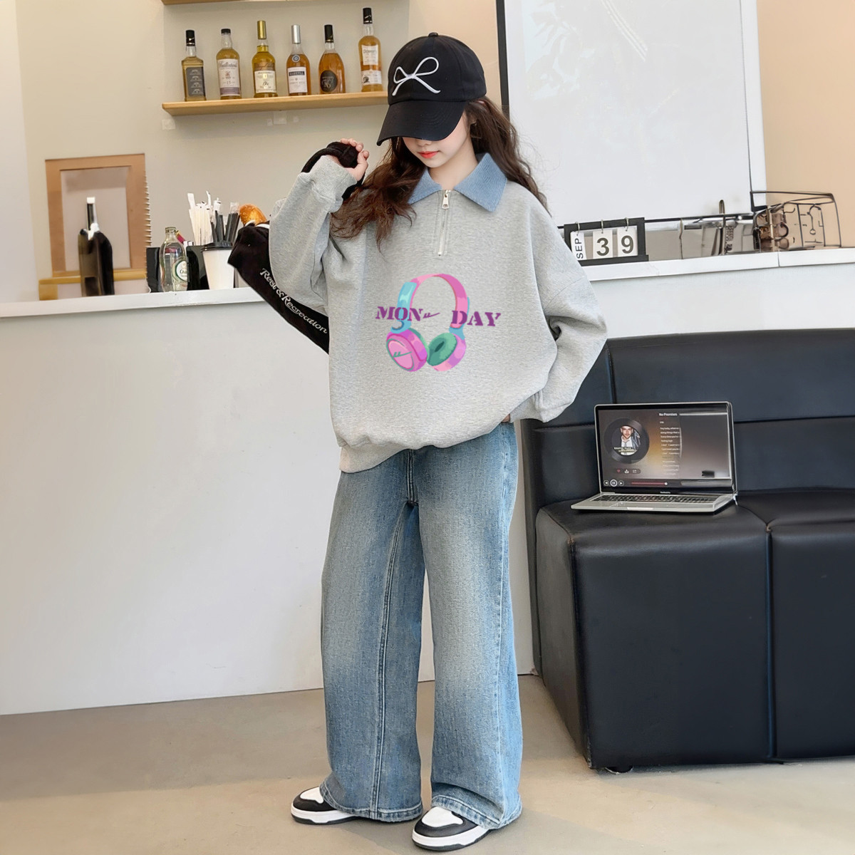 童装女童套装春季中大童翻领牛仔卫衣牛仔裤两件套儿童洋气 035923