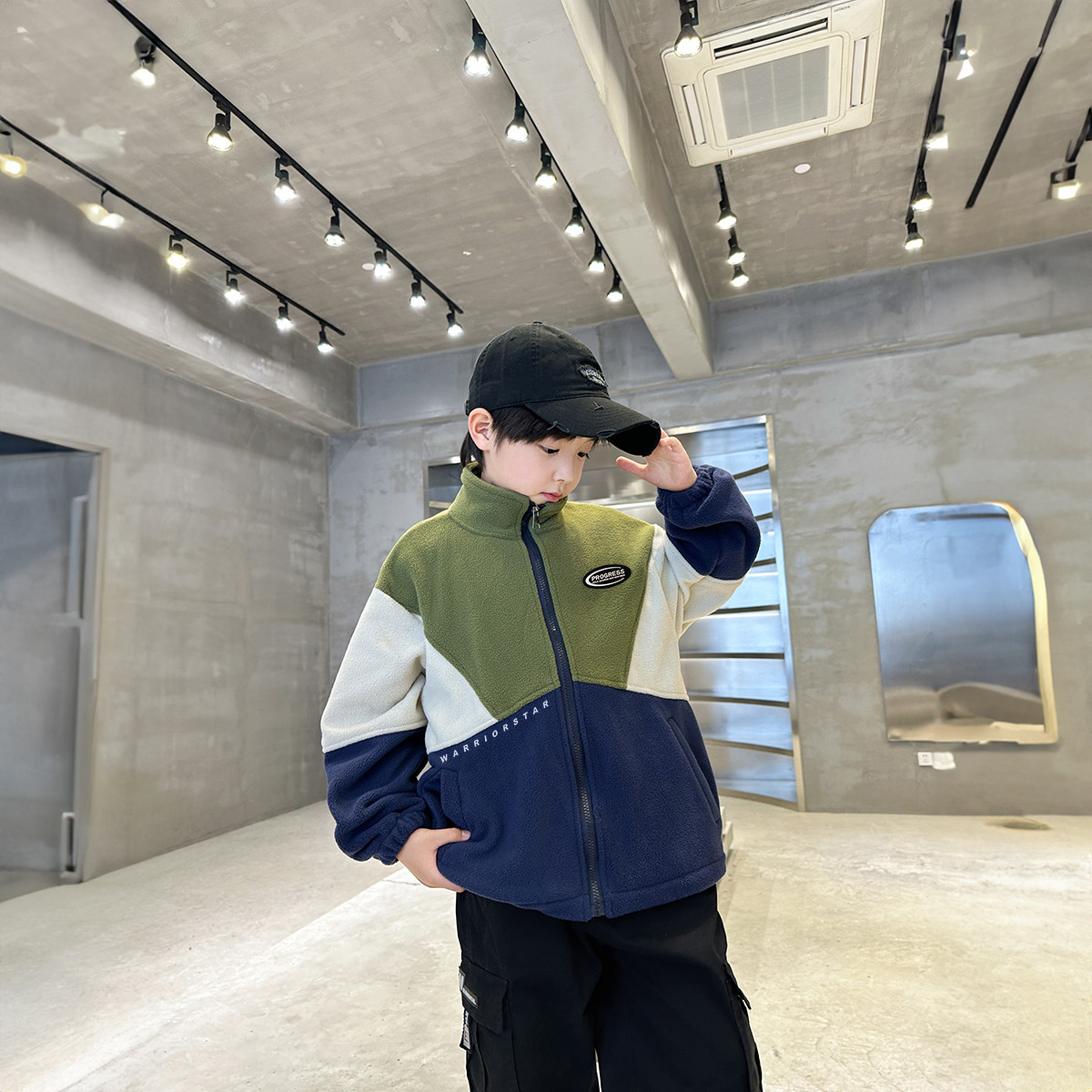 童装男童外套春季中大童摇粒绒上衣时尚拼接撞色外套立领保暖 963923