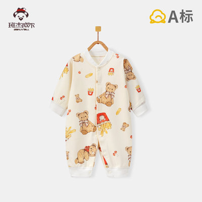班杰威尔 婴儿纯棉无骨宝宝哈衣 66cm 四季薯条熊