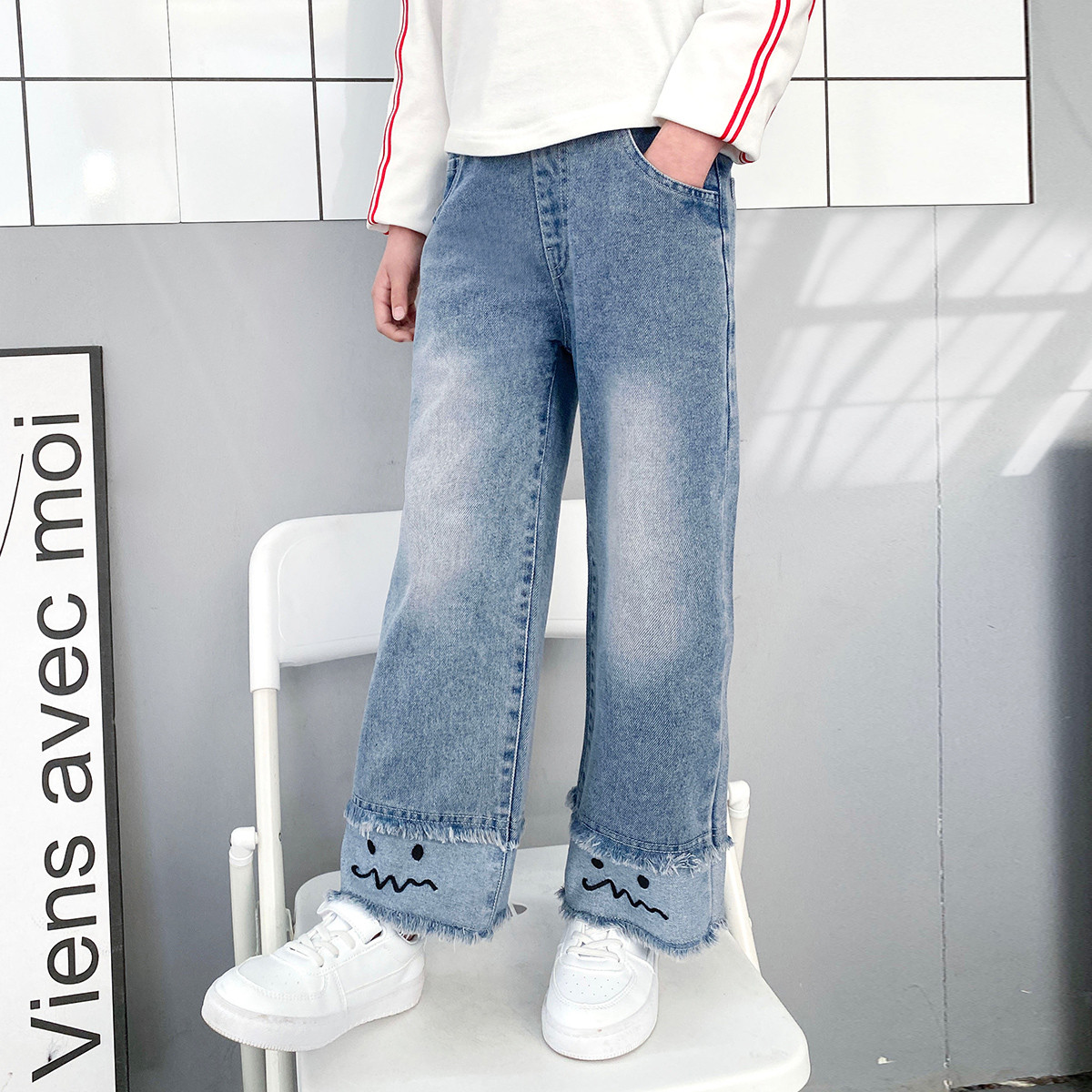 女童裤子春季儿童中大童洋气直筒阔腿牛仔裤春款宽松长裤潮 969295