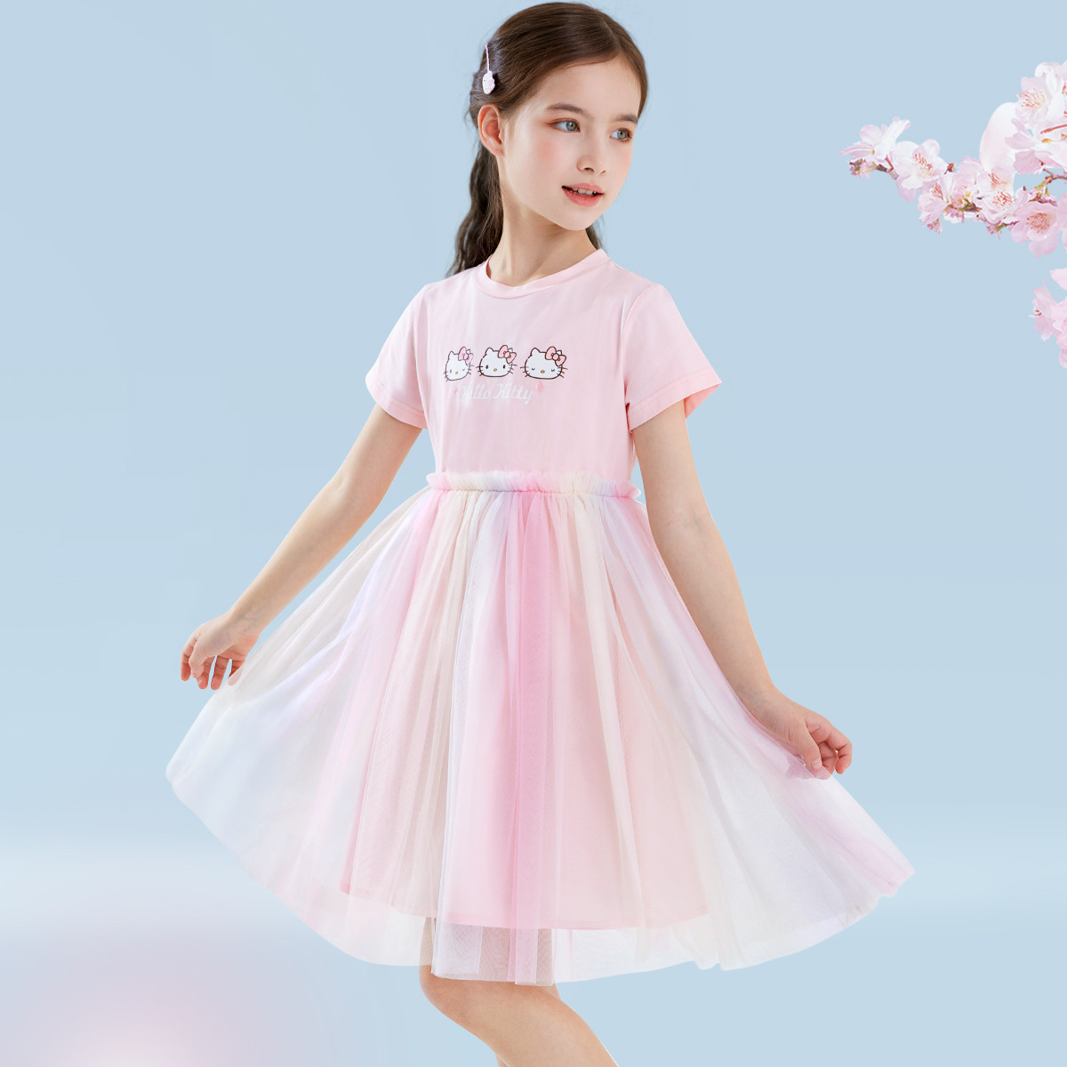 女童连衣裙儿童公主裙针织裙子夏装新款短袖大童彩虹网纱裙 121025