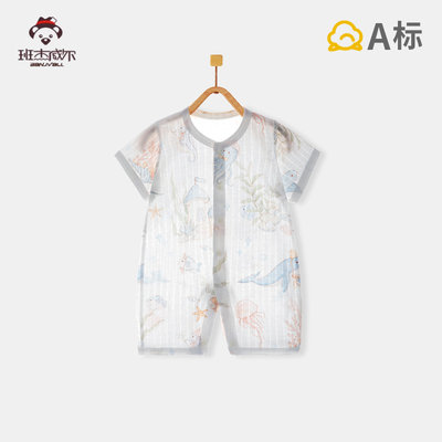 班杰威尔 婴儿超薄纯棉无骨宝宝哈衣 90cm 夏季短袖蓝海鲸