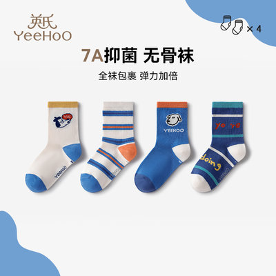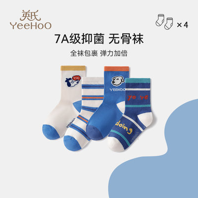英氏(Yeehoo)四季款棉质袜子【7A抑菌4双装】男童条纹小狗 S码