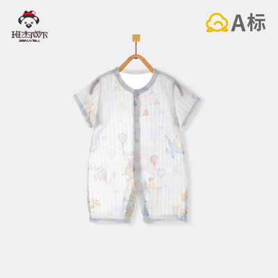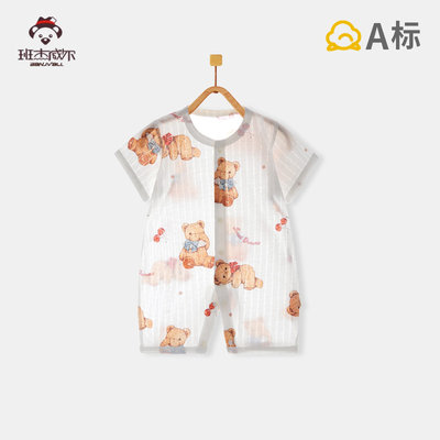 班杰威尔 婴儿超薄纯棉无骨宝宝哈衣 90cm 夏季短袖趴趴熊