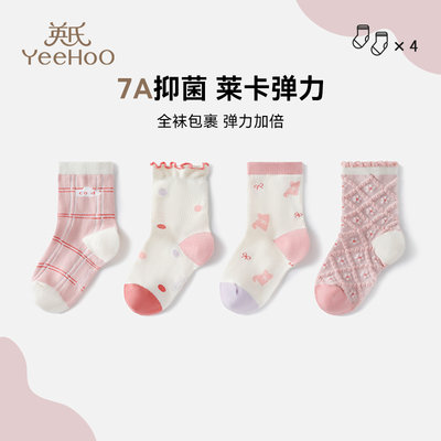 英氏(Yeehoo)四季款棉质袜子【7A抑菌4双装】女童粉色甜梦 XL码