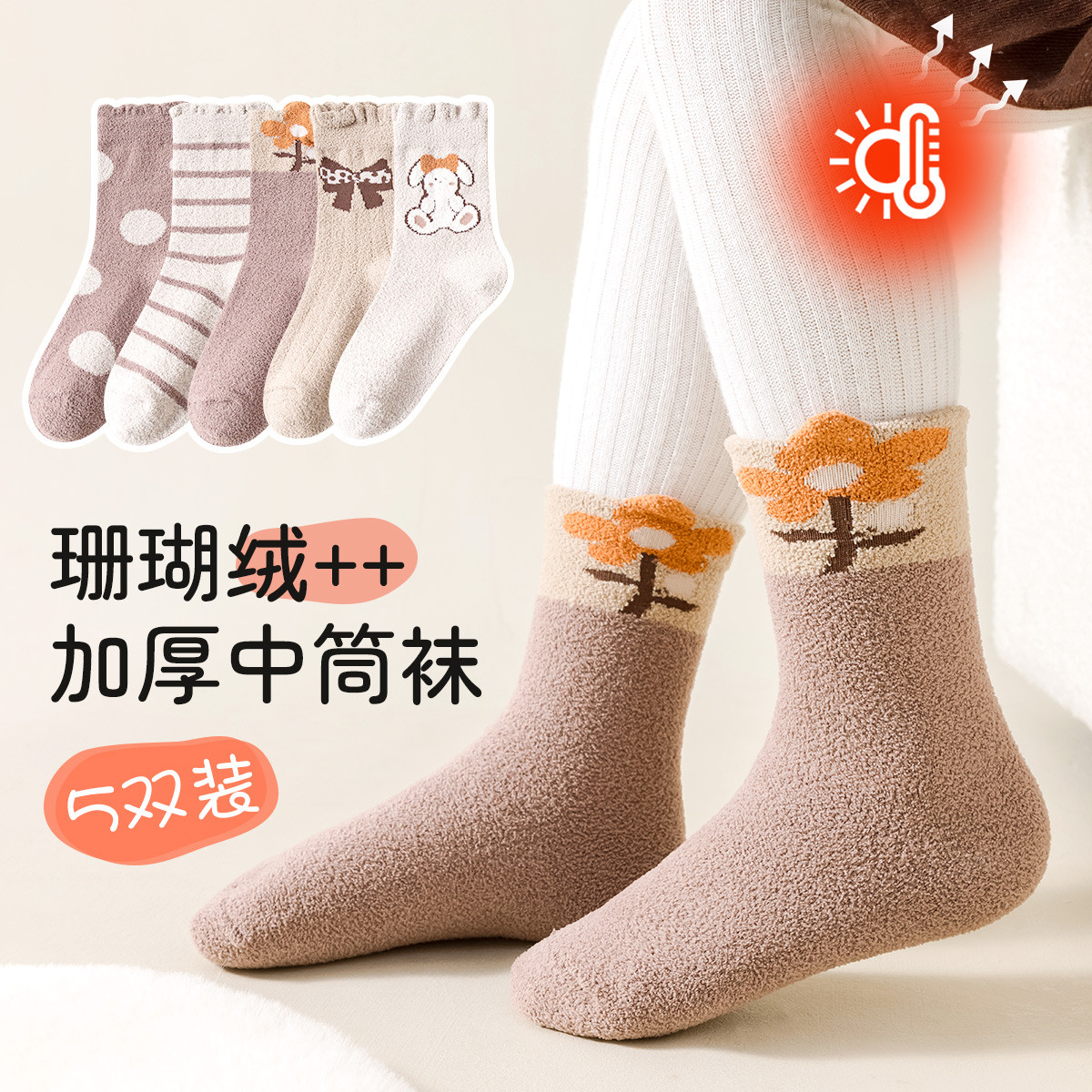 5双装【暖绒雪地袜】加绒加厚女童袜子保暖女童蓄热锁温儿童袜子 633163
