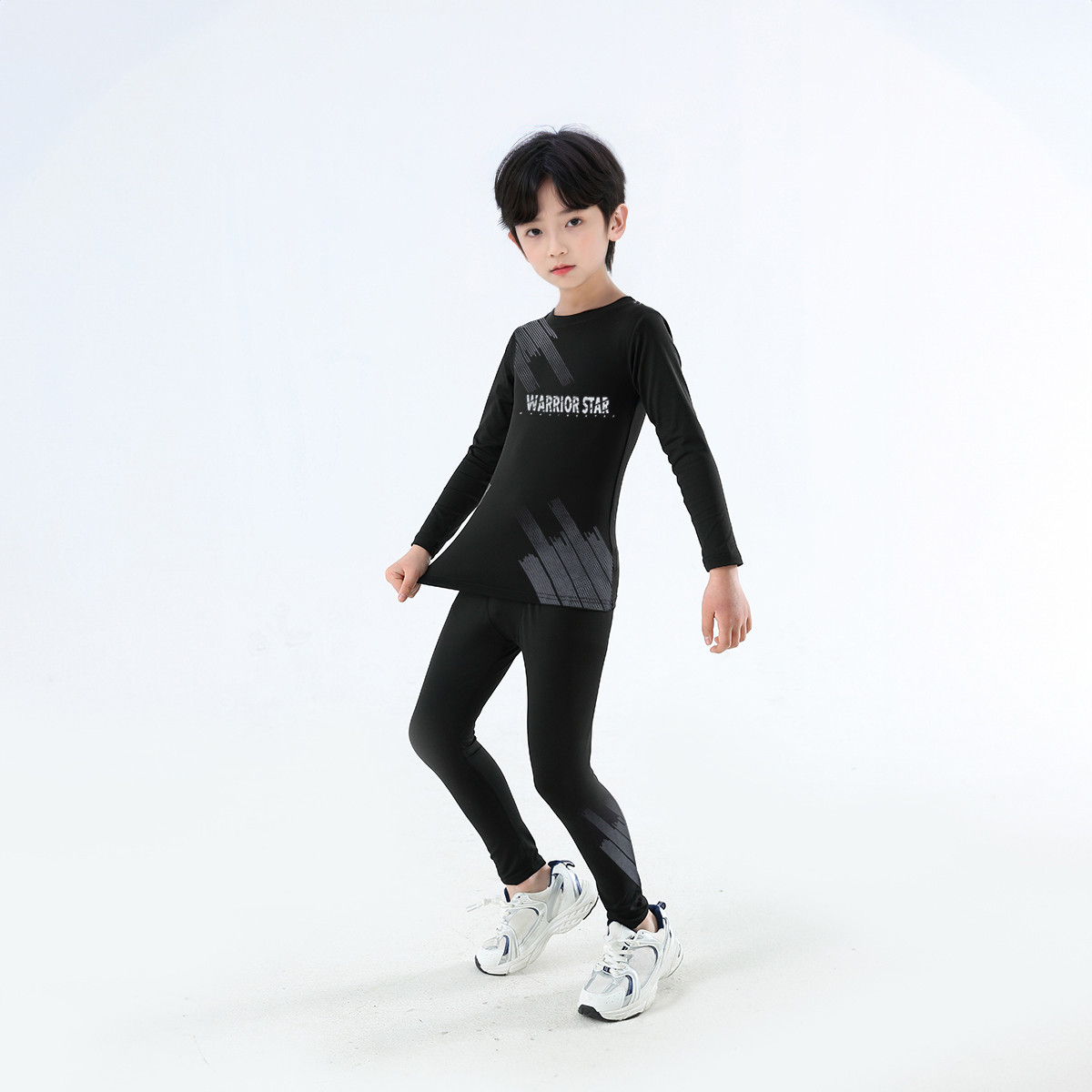 童装男童训练服套装弹力贴身运动中大童长袖长裤跑步两件套 672979