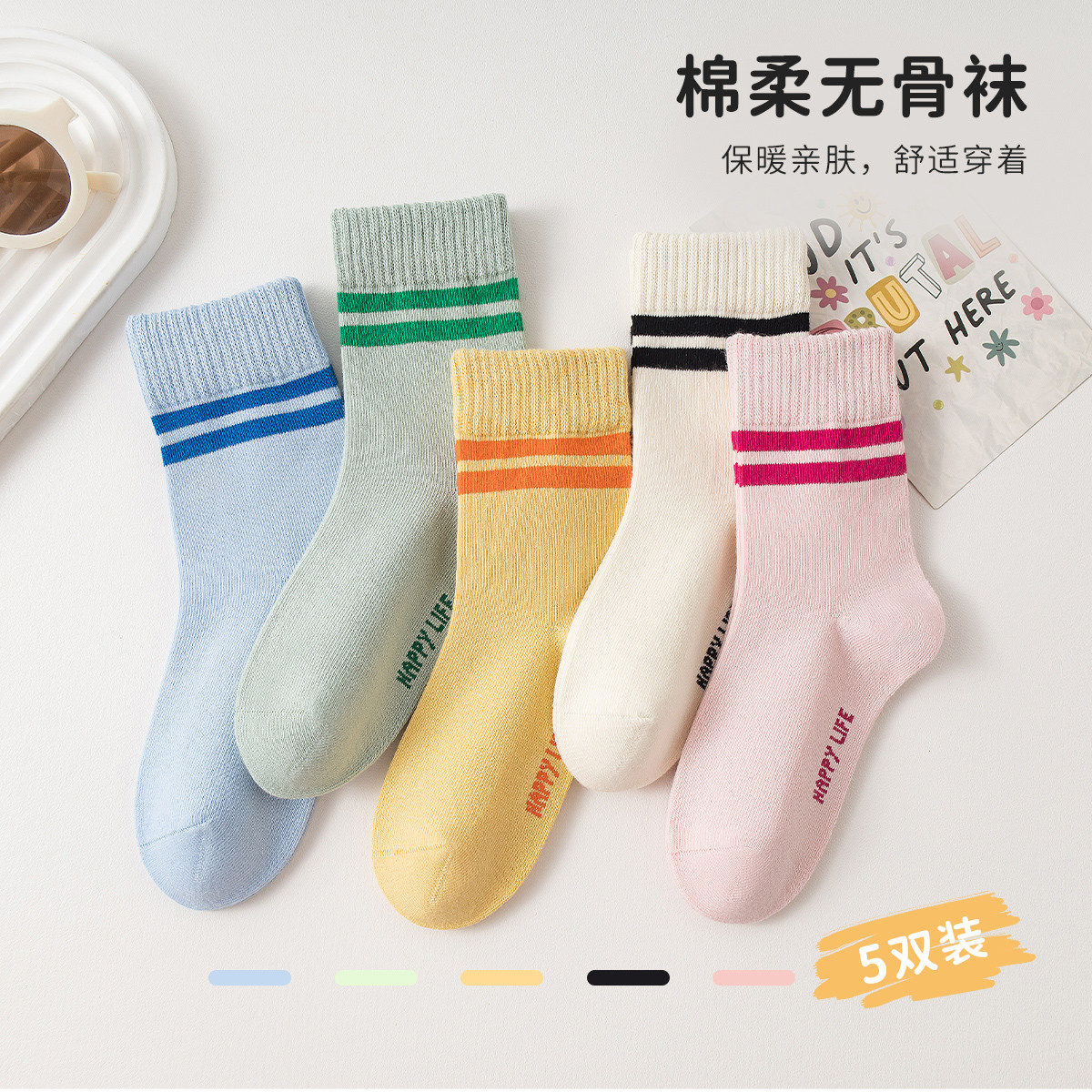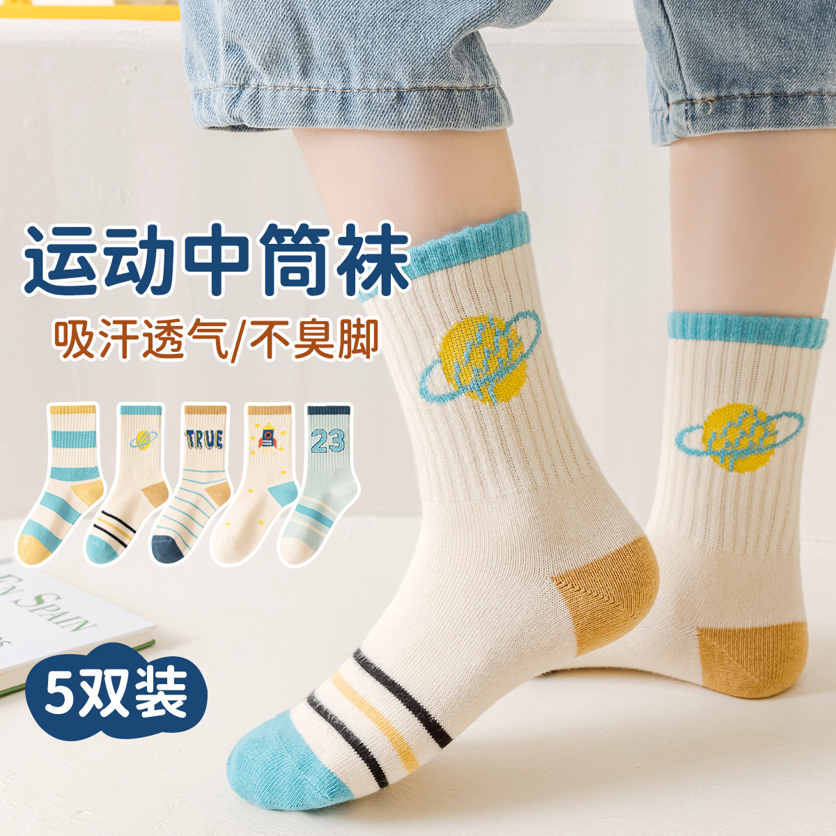 5双装【运动童袜】儿童袜子男童袜子亲肤舒适中筒袜中大童棉袜 637259