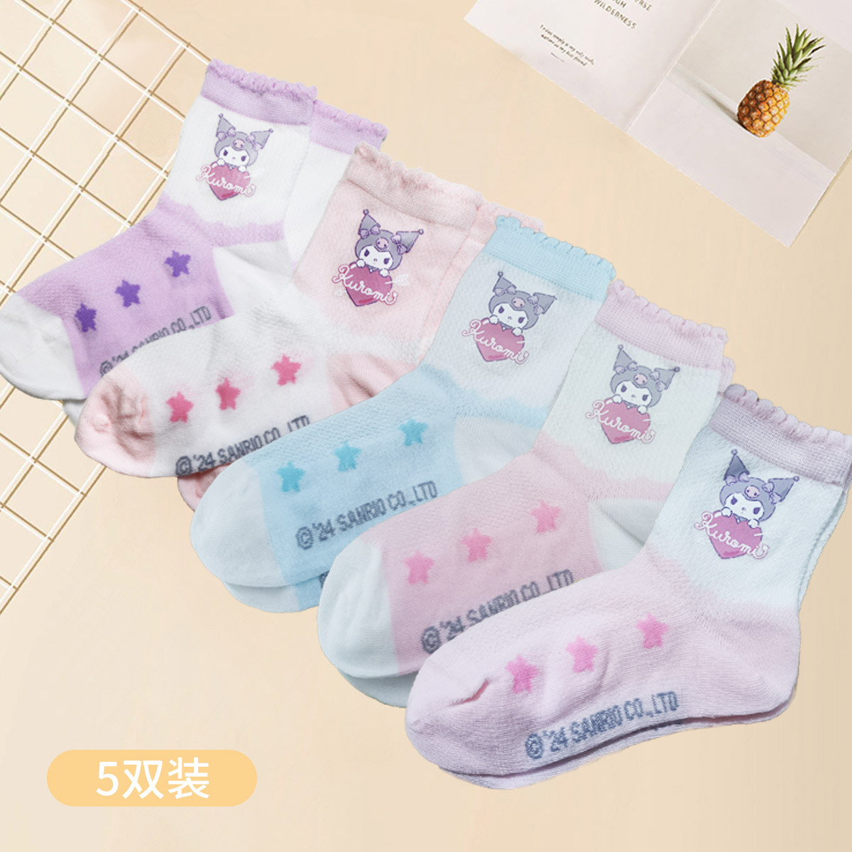 【ip联名】5双装库洛米儿童夏季袜子透气春夏新款网眼袜 363457