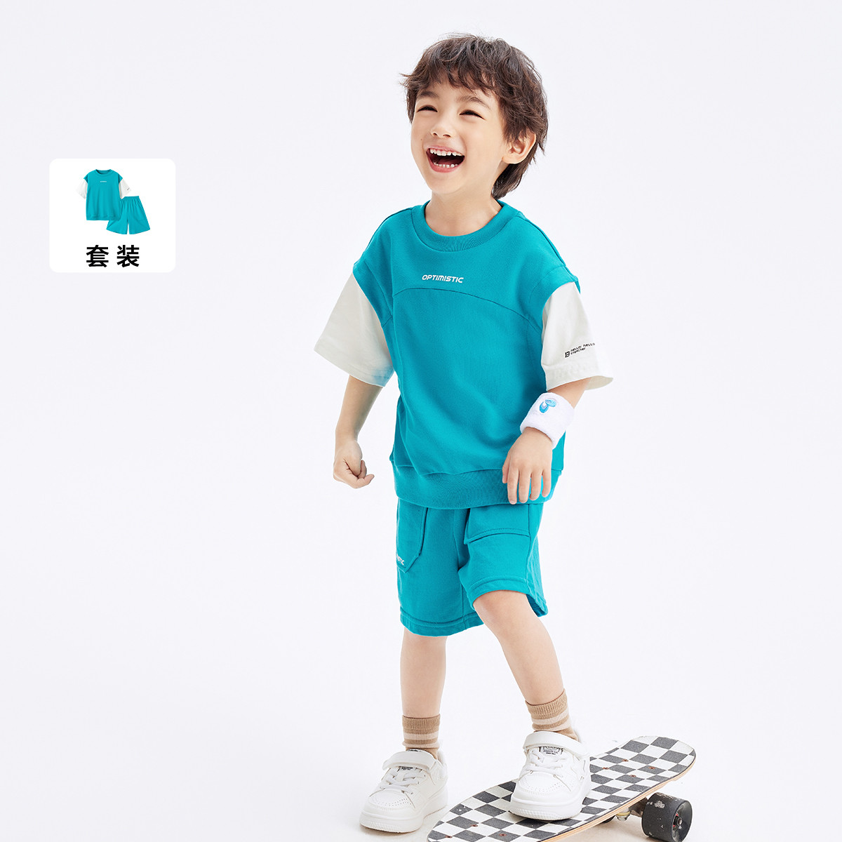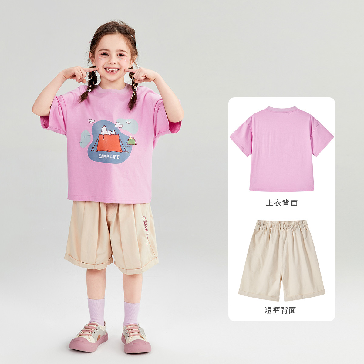 【儿童套装】25年夏季新款中大童圆领短袖工装短裤五分裤两件套 687007