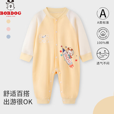 巴布豆 全棉长袖连体哈衣 黄色 90码