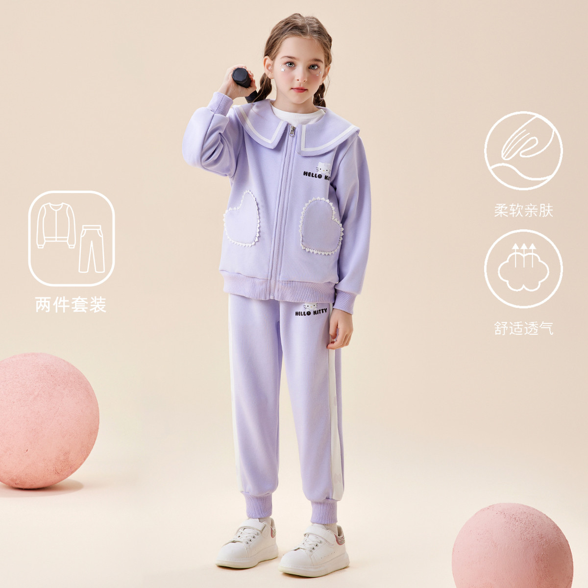 春季女童套装2025款中大童装户外跑步运动上学可爱清新两件套 569950