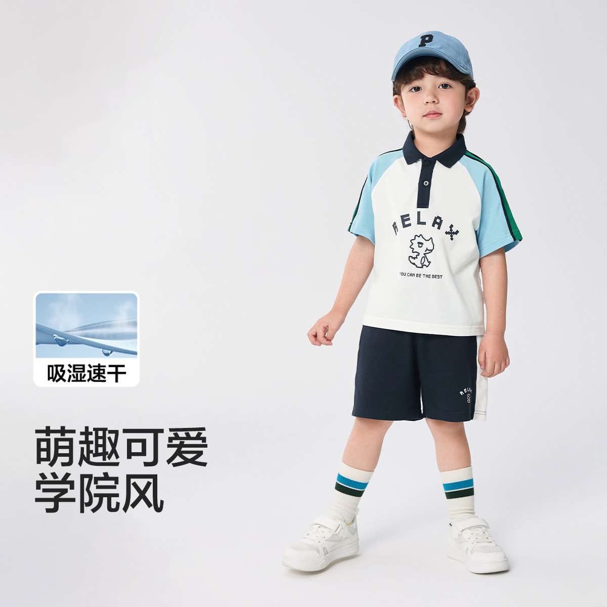 男童儿童短袖套装吸湿速干两件套学院风夏装2025新款撞色潮流 740165