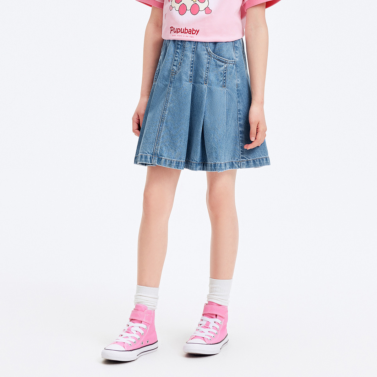 活力百搭儿童牛仔裙子女童夏装半身裙百搭百褶裙大童纯棉甜美时尚 342213