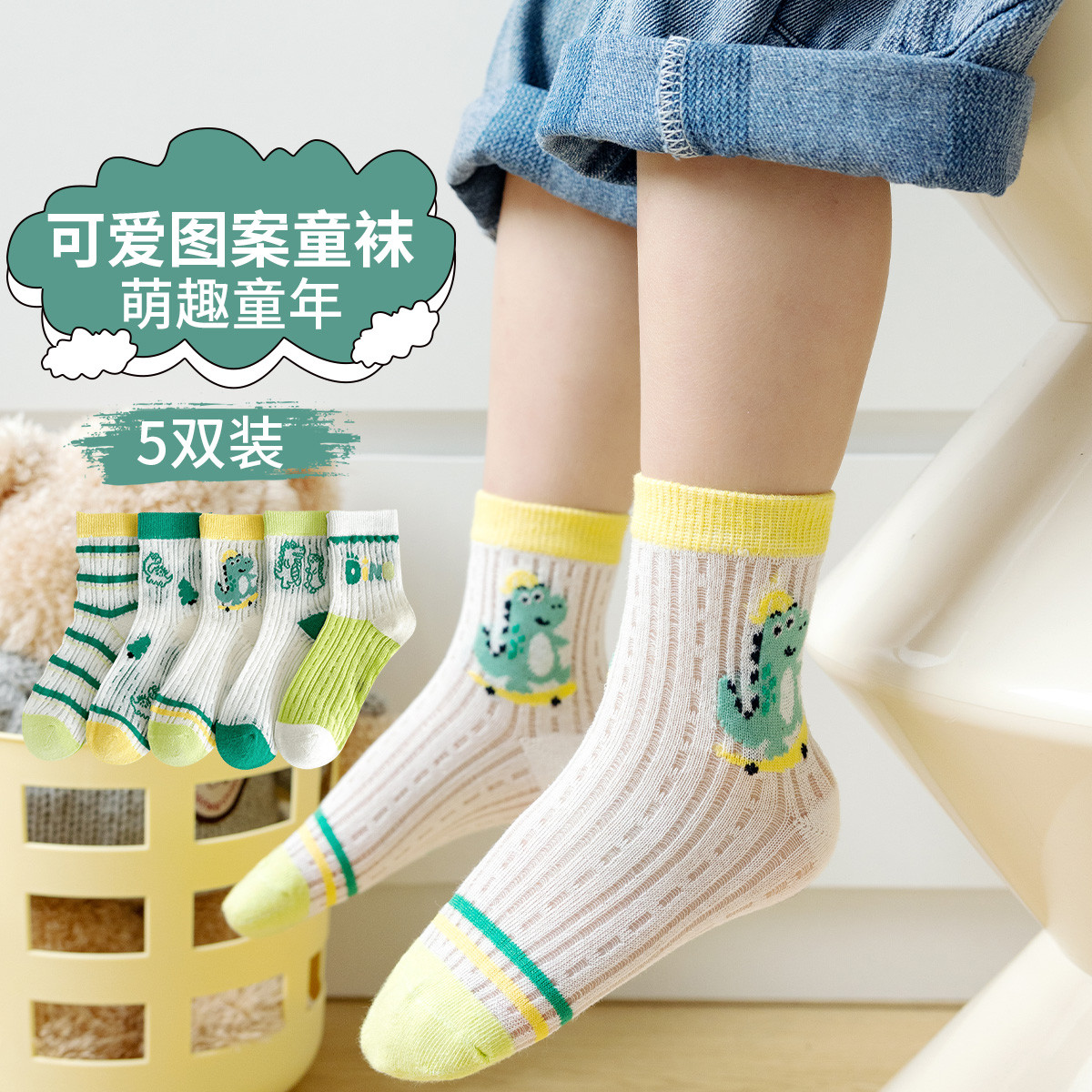 【5双装可爱卡通】男童袜子夏款儿童袜子舒适透气棉质网眼中筒袜 224907