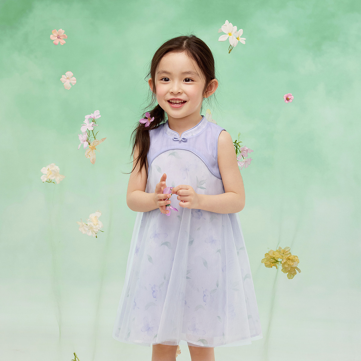 高级感女童裙子儿童连衣裙2025新款夏装新中式无袖网纱裙 598021